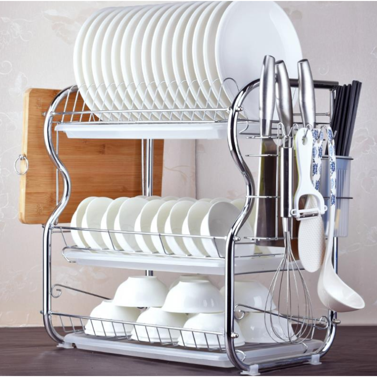 A: Three-layer white plate (chopping frame + knife holder chopsticks)
