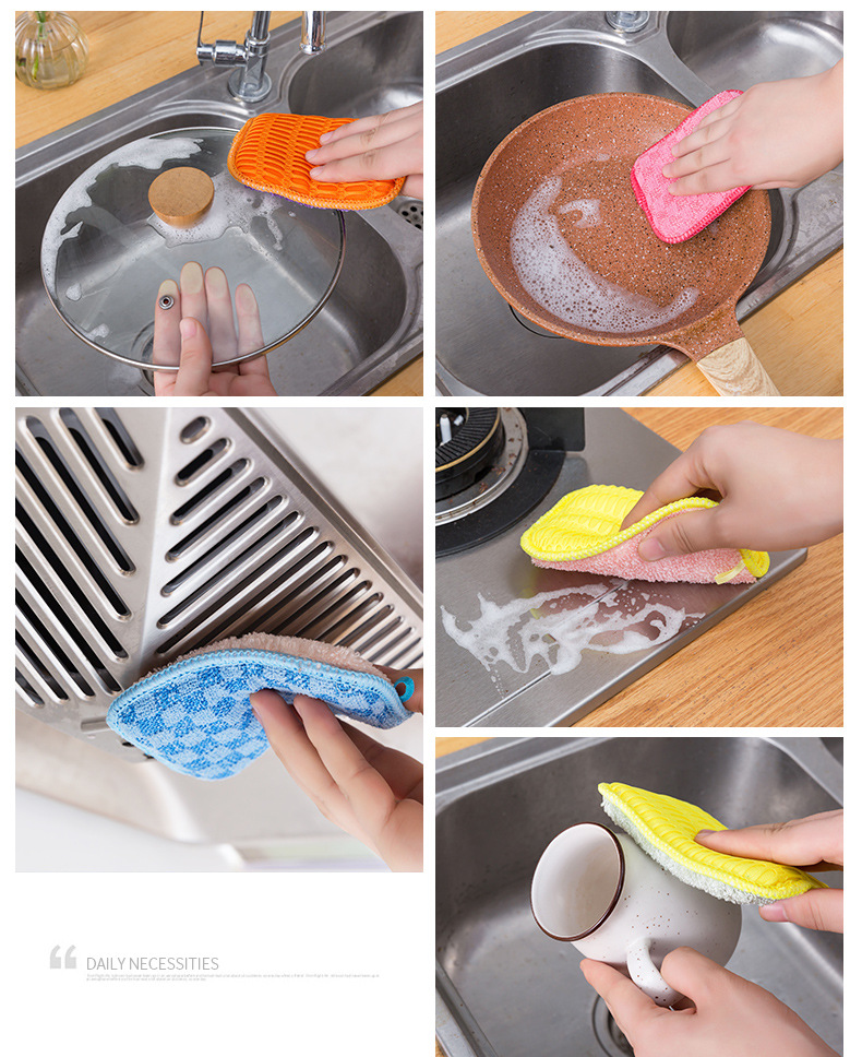 Color: bamboo pulp fiber 3 Pack [wash dishes choose me], microfiber 3 Pack [brush pot choose me]