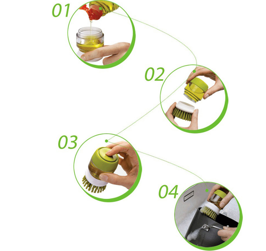 Dishwashing And Pot Washing Brush With Liquid Soap For Tableware