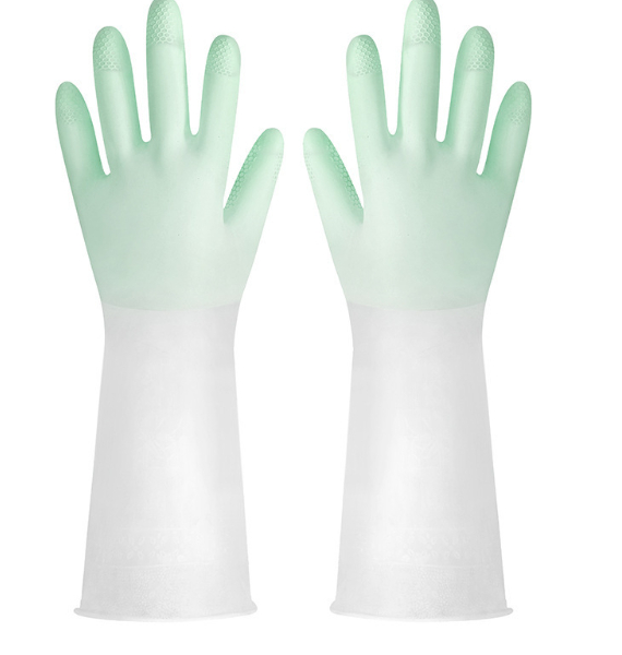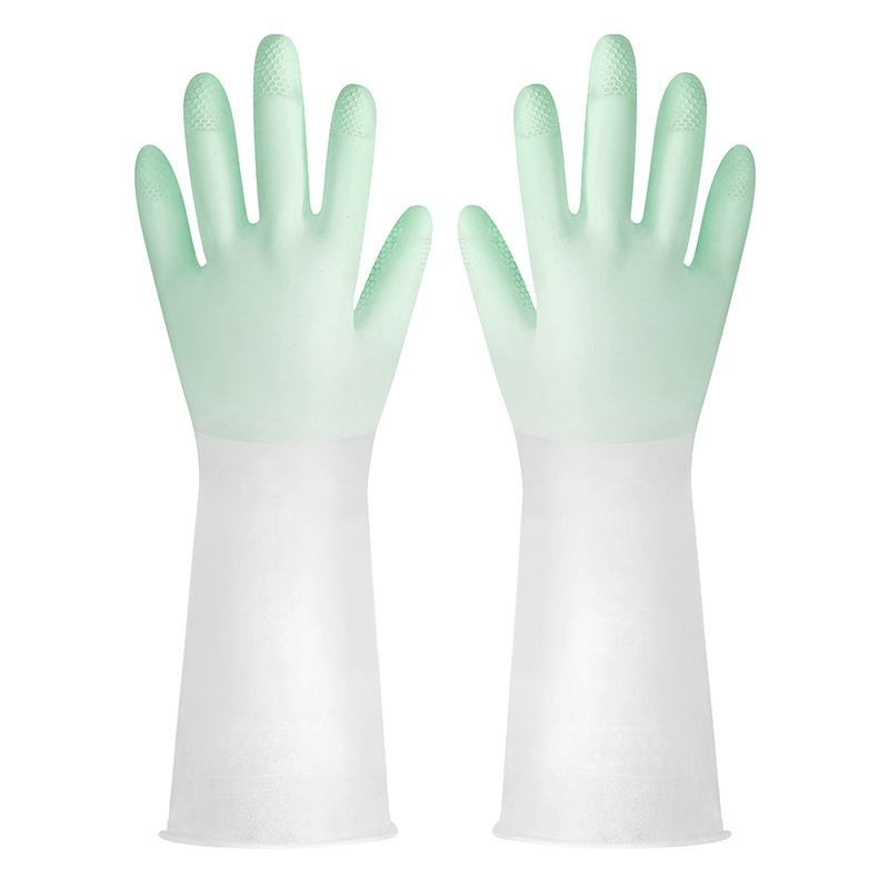 Dishwashing Gloves In Translucent White Made From Cleaning-grade Rubber With A Non-slip Design
