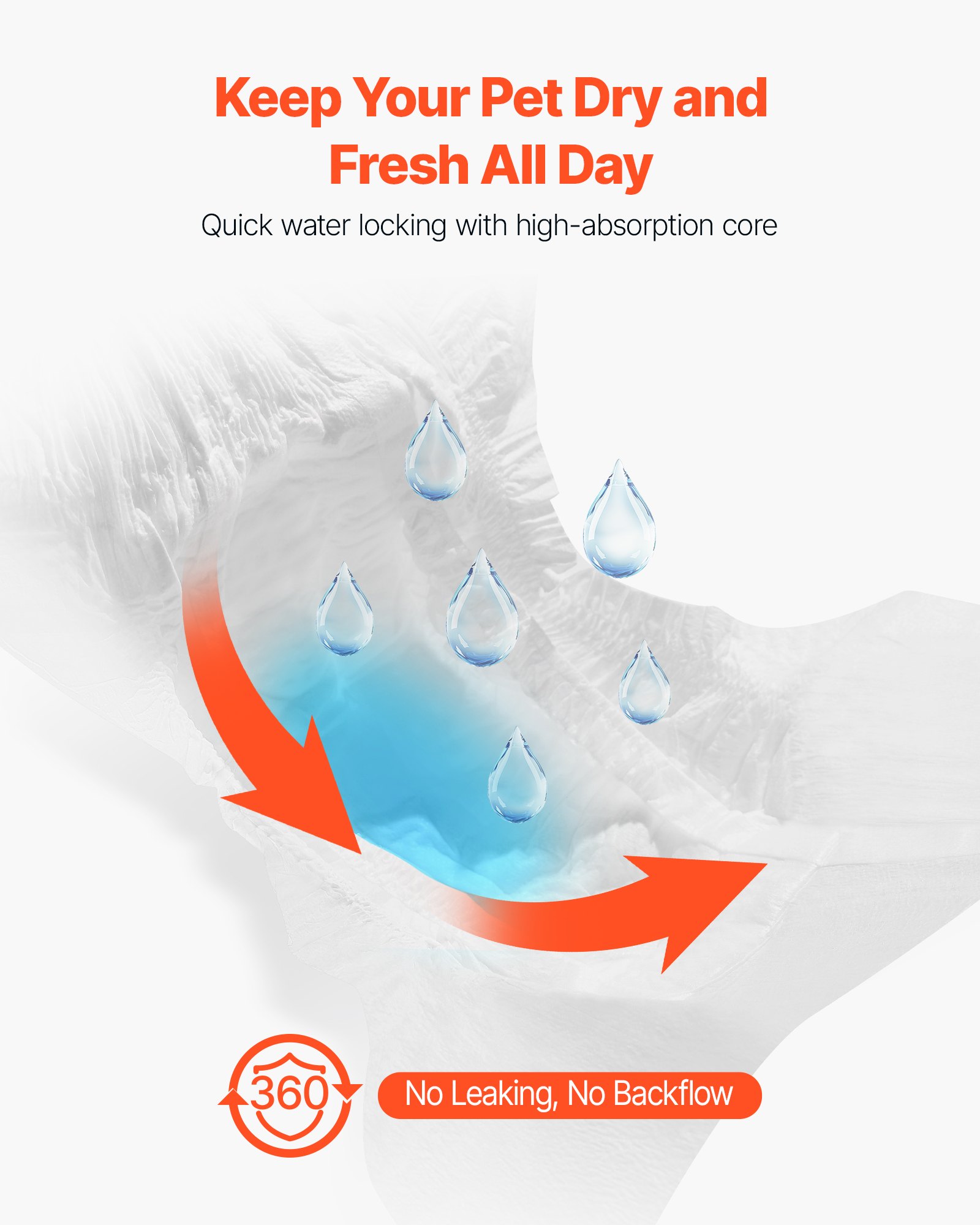 Super Absorbent: VEVOR M-sized disposable female dog diapers feature a super absorbent core that quickly locks in liquid, offering 360° leak-proof protection with no backflow. Perfect for dogs in heat cycles, pet training, incontinence, post-surgery recovery, and travel. Suitable Waist Size: 15-23 inches / 38.1 - 58.42 cm