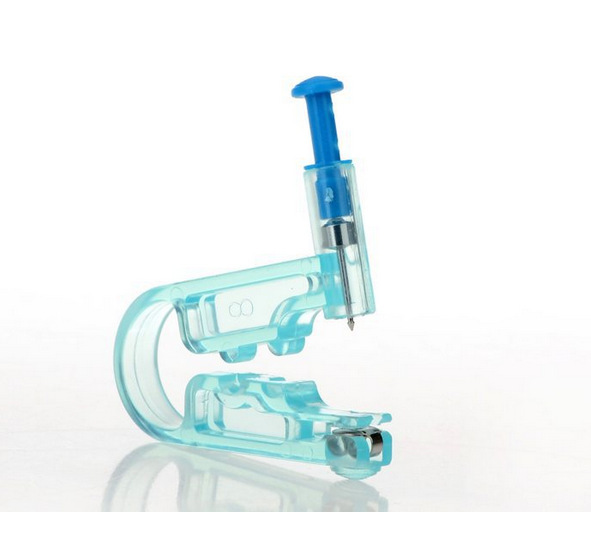 5. The thumb gradually increases the force, and the wings on both sides of the pressure bar will break when the force is strong. The pressure bar will push the ear needle suddenly through the earlobe and fix it on the ear nail seat.