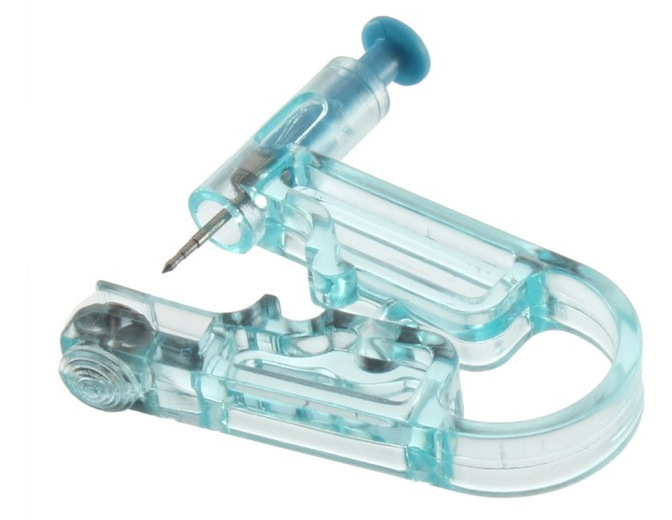 3. Open the ear-wearing disposable packaging, as shown in the figure, hold the ear-piercing device, and pay attention to the thumb to press on one side of the pressure bar, which is convenient for exertion.