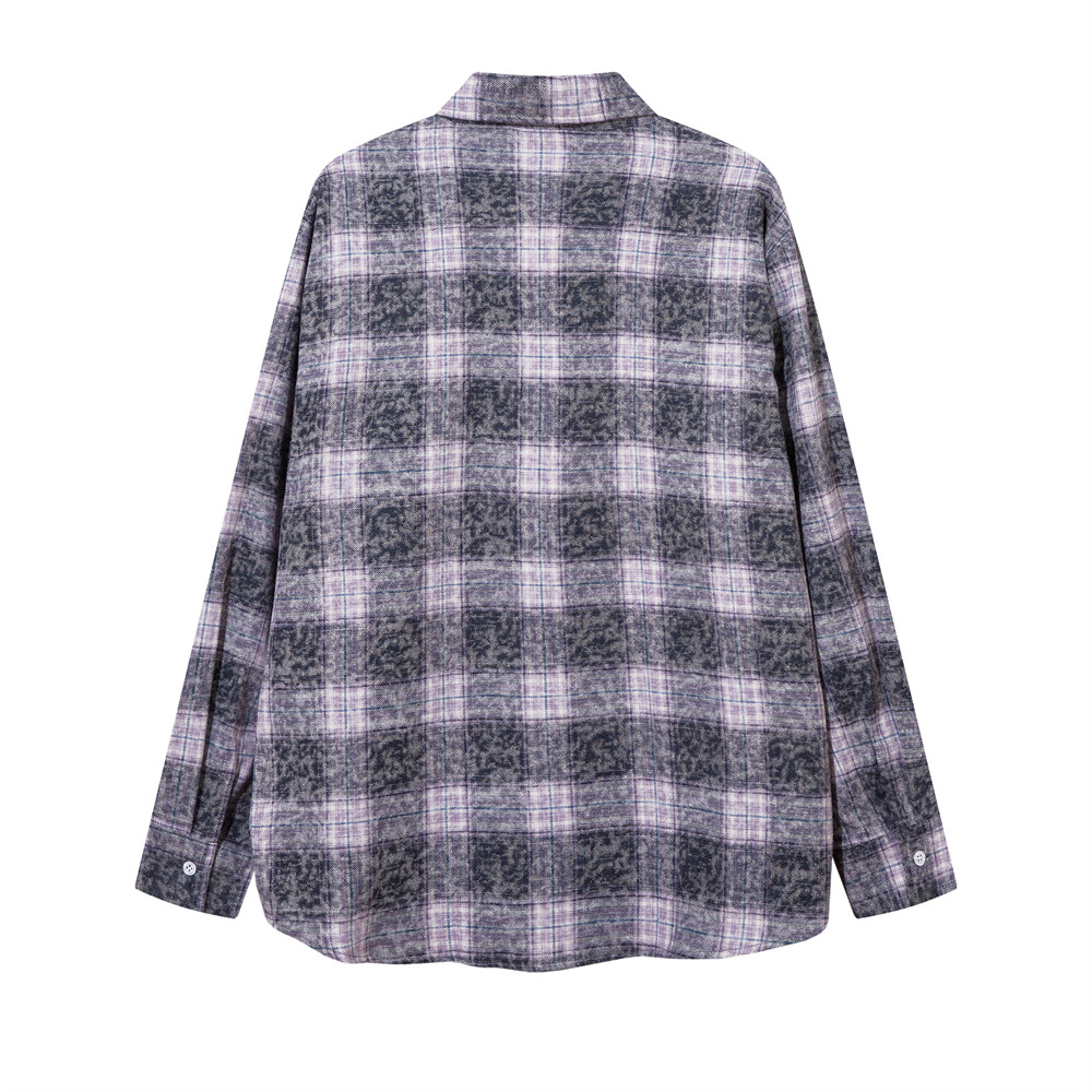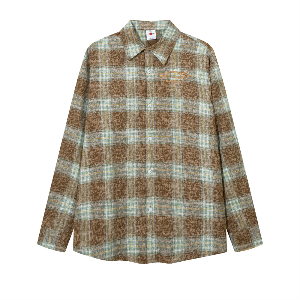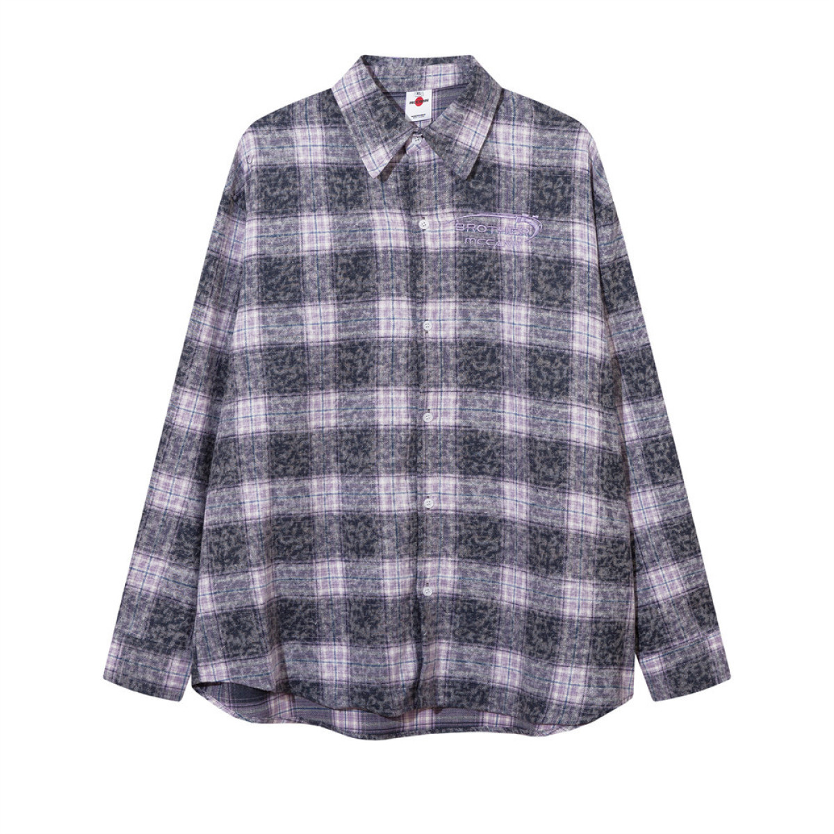 Distressed Color Matching Plaid Long Sleeve Shirt For Men