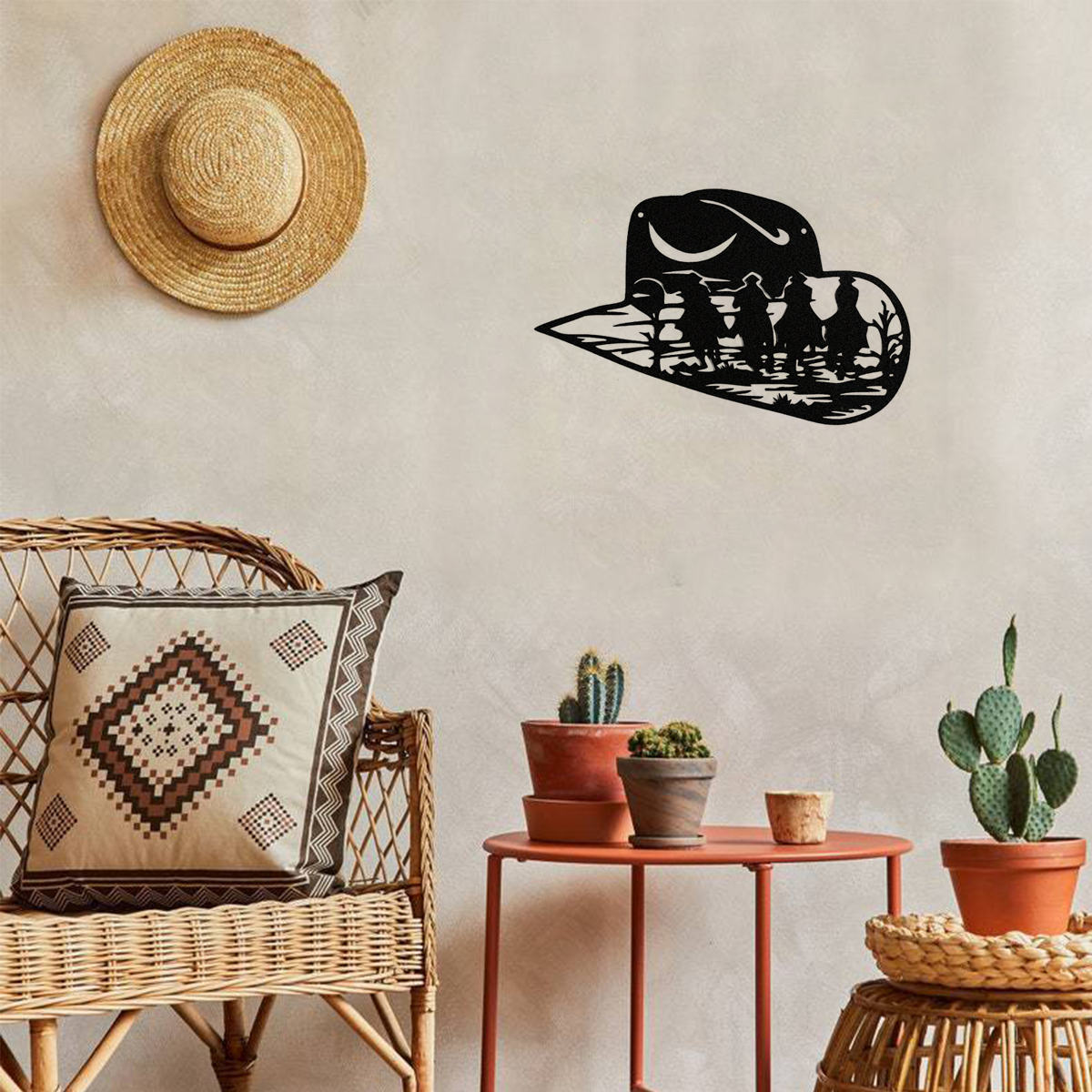 Distressed Metal Cowboy Hat Wall Decor - Vintage Western Wall Art