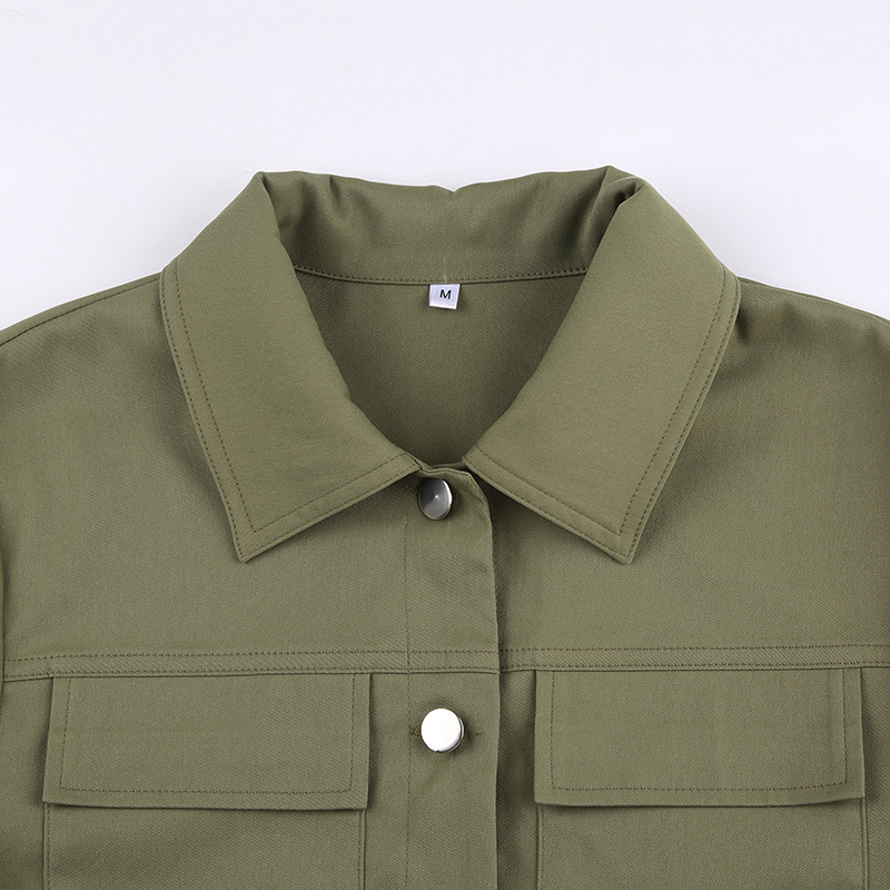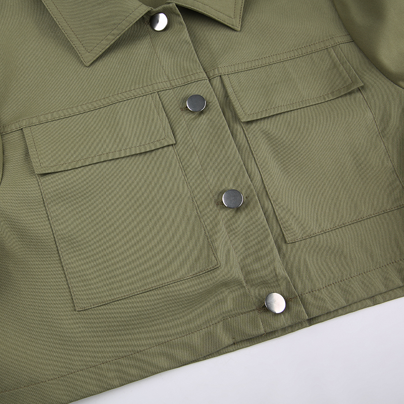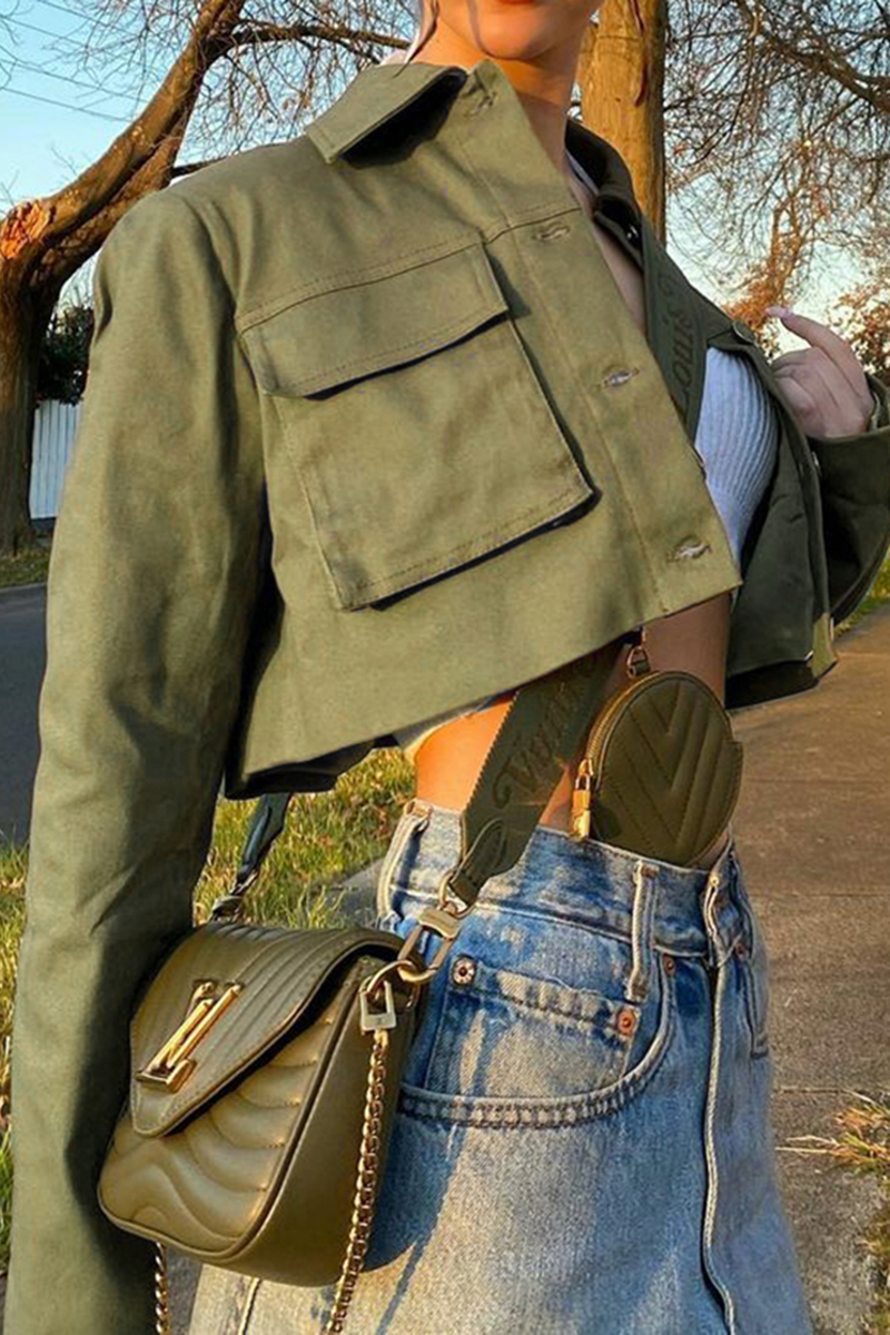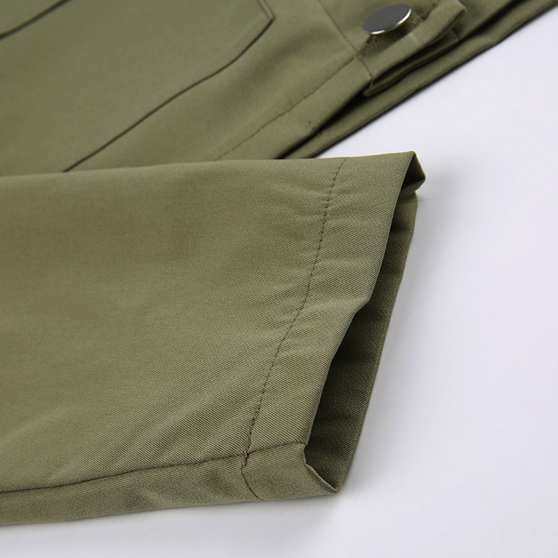 Distressed Multi-pocket Panelled Army Green Lightweight Jacket