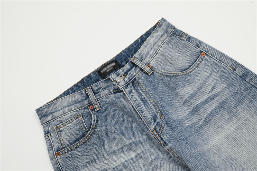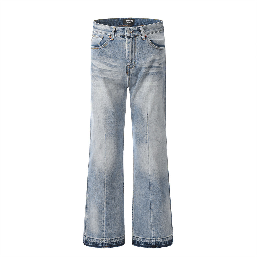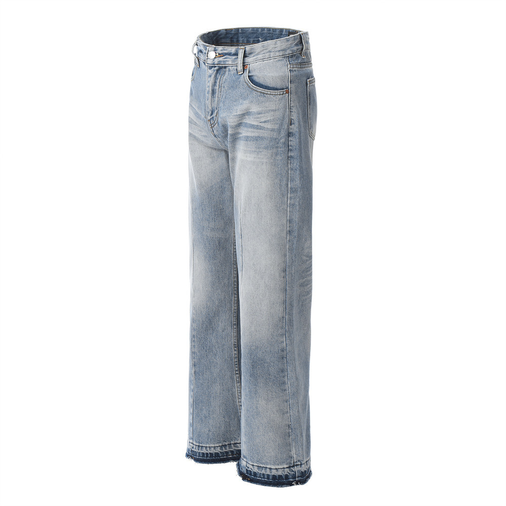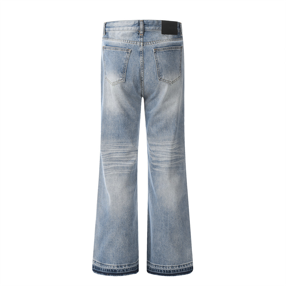 Distressed Raw Edge Denim Bootcut Trousers Men's