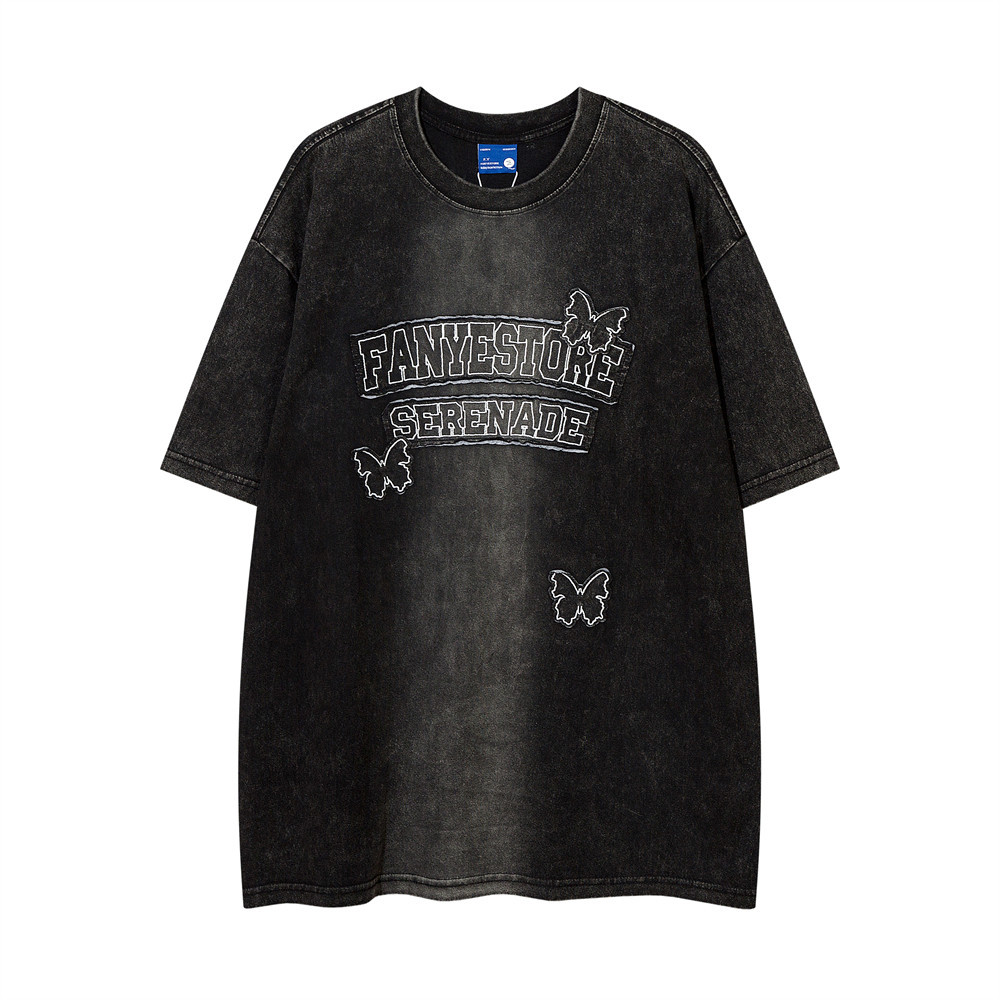 Distressed Wash Gradient Short Sleeve Loose T-shirt