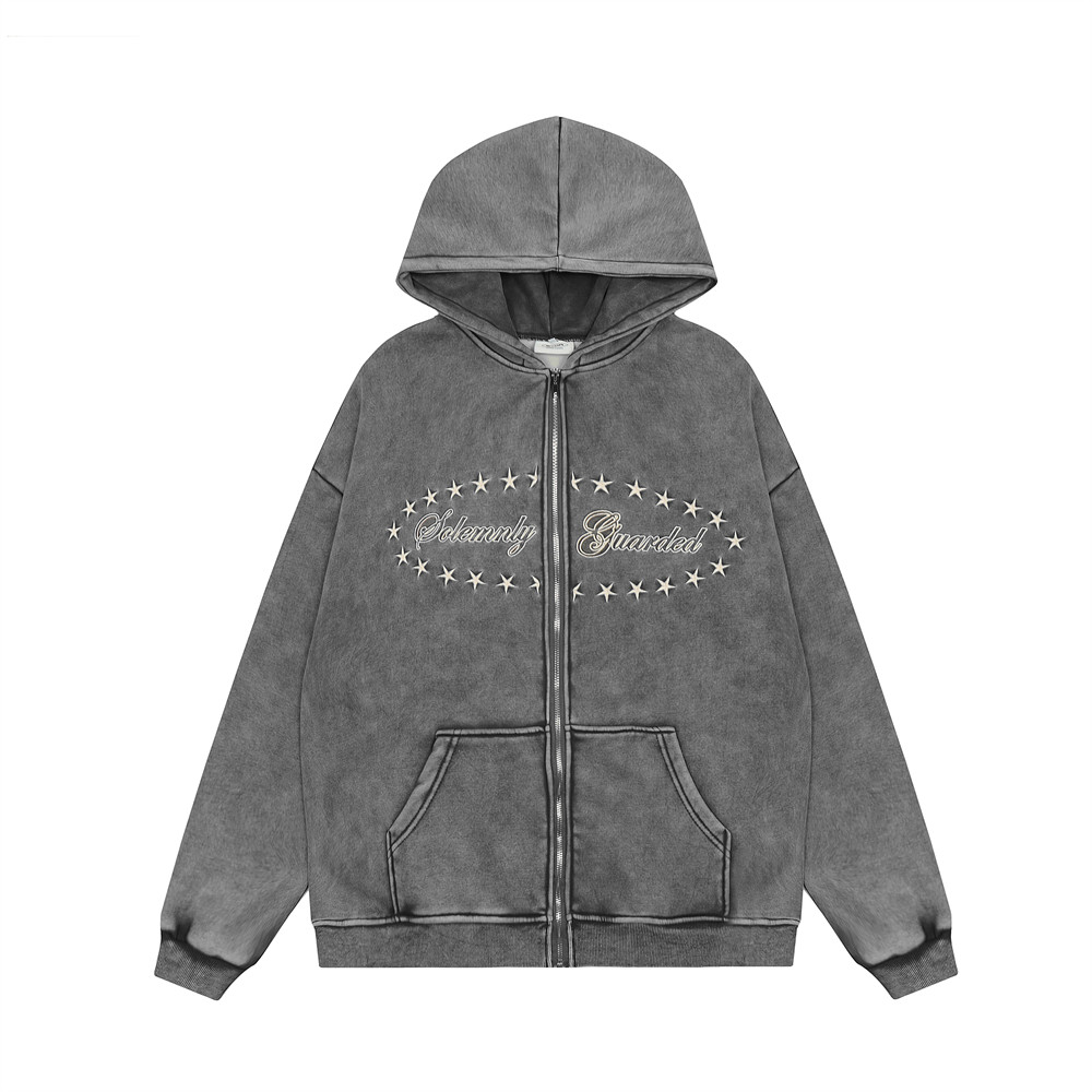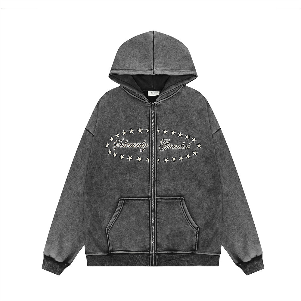 Distressed Washed Hooded Jacket Men's Punk Trendy