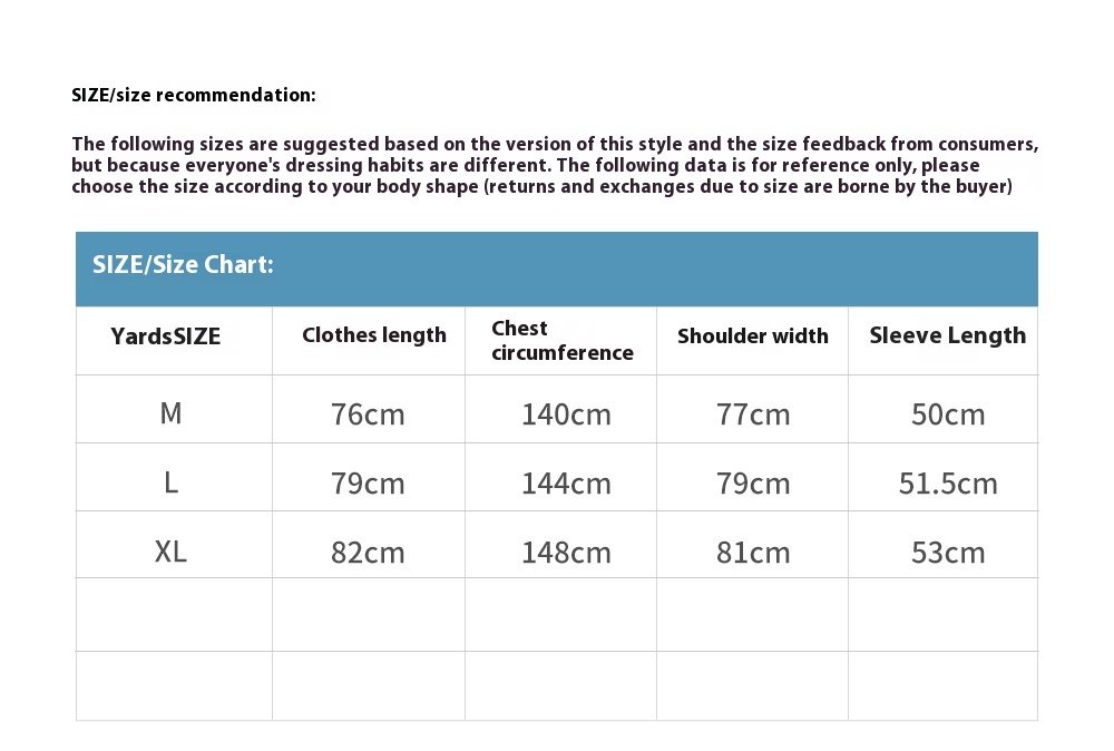 Note: 1. Asian sizes are 1 to 2 sizes smaller than European and American people. Choose the larger size if your size between two sizes. Please allow 2-3cm differences due to manual measurement. 2. Please check the size chart carefully before you buy the item, if you don't know how to choose size, please contact our customer service. 3.As you know, the different computers display colors differently, the color of the actual item may vary slightly from the following images.