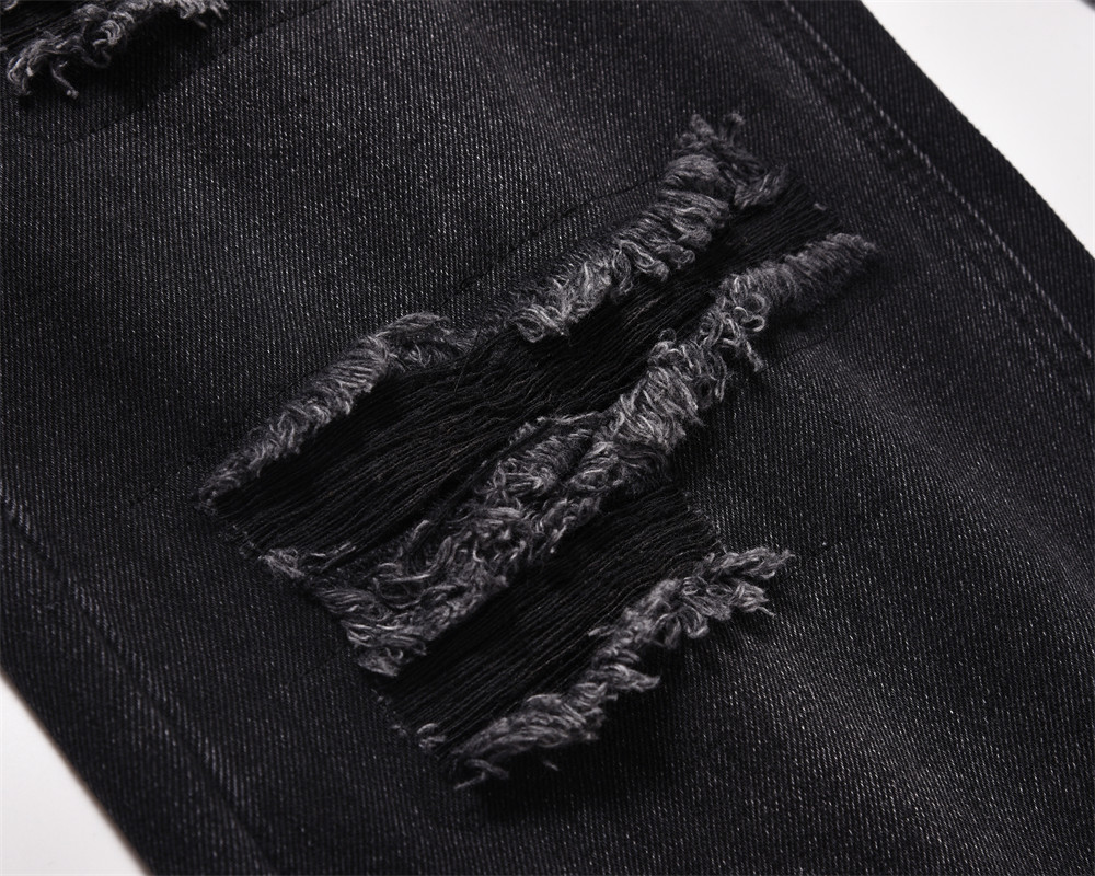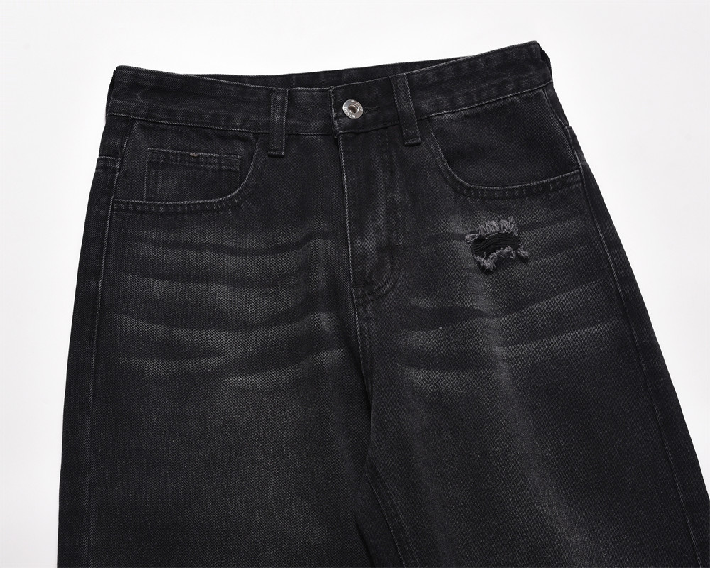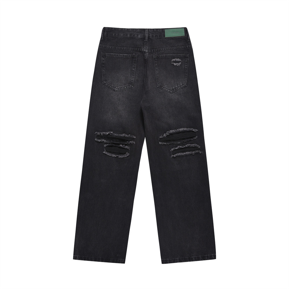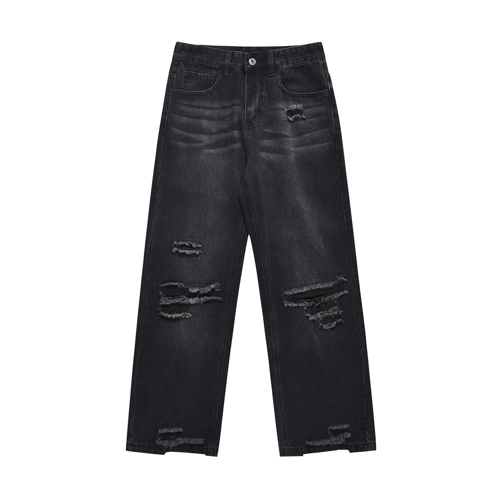 Distressed Wide Leg Denim Trousers For Men