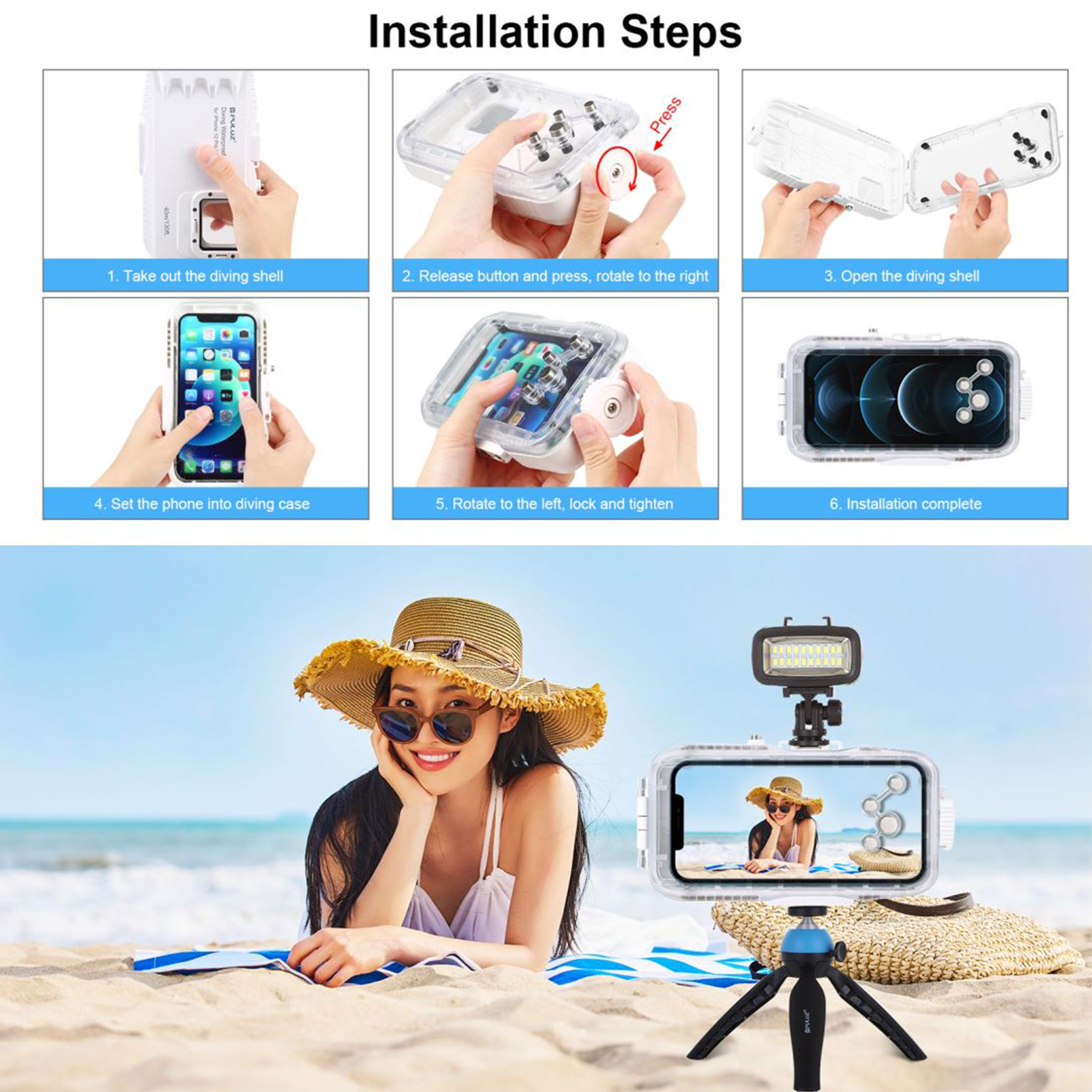 2. Waterproof depth 40m/130ft, suitable for underwater photography.
