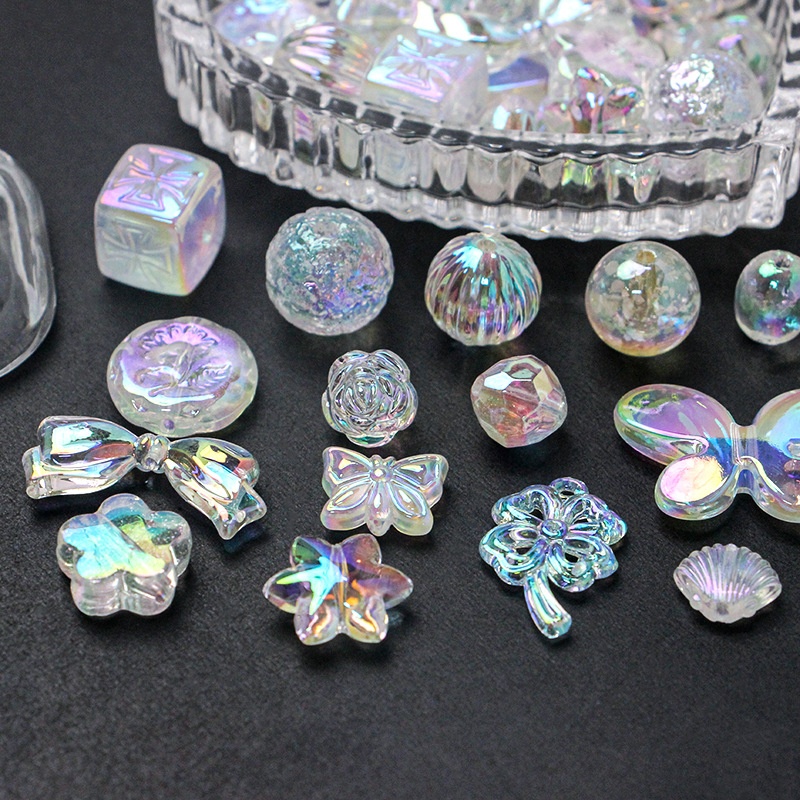 Color: [Aurora] 1 bow H-8586, [Aurora] 1 thread bead H-8587, [Aurora] 1 Flower H-8588, [Aurora] 1 meteor H-8589, [Aurora] pumpkin ball 1 H-8590, [Aurora] Rose 1 H-8591, [Aurora] six-pointed star H-8592, [Aurora] big bowknot 1 H-8593, [Aurora] Small Square 1 H-8594, [Aurora] small butterfly 1 H-8595, [Aurora] Surface cutting beads 1 H-8596, [Aurora] 4-Leaf Clover 1 H-8351, [magic color] small beads 1 H-8349, [Aurora] 1 flat round rose H-8350, [Aurora] 1 Oval bean H-8346, [Aurora] 1 shell H-8597