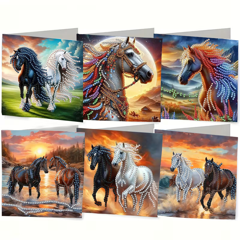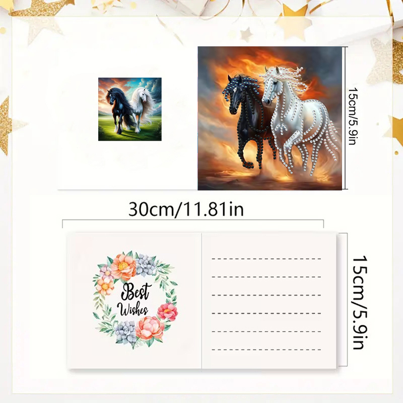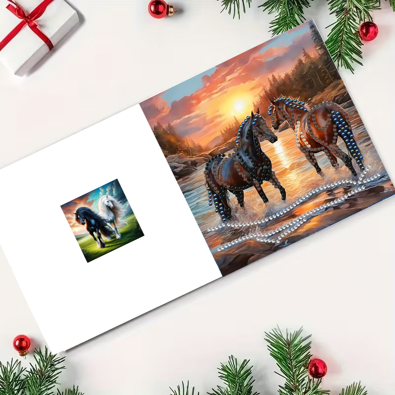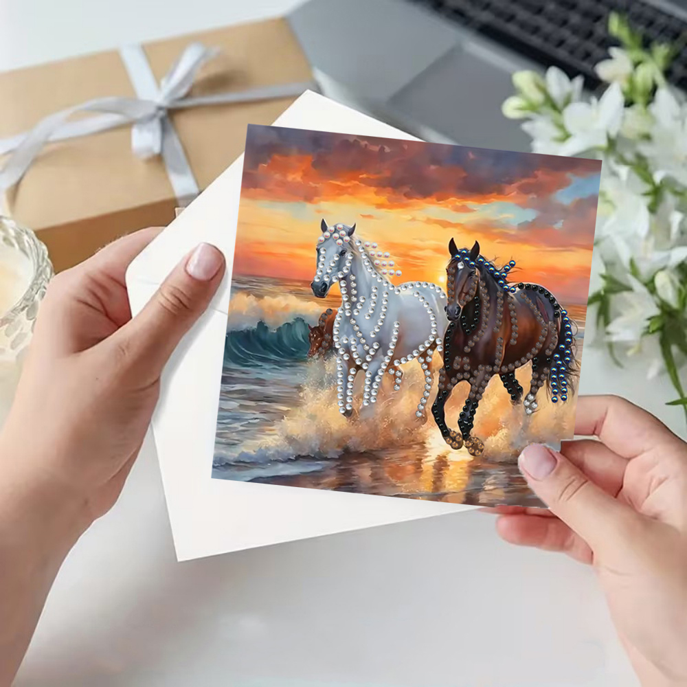 DIY Diamond Painting Kit Birthday Card Kit, Unique Animal And Horse Pattern Design, Water Diamond Diamond Painting Art Mosaic Postcards, Festival Cards Perfect For Families, Friends, And Lovers, Handm