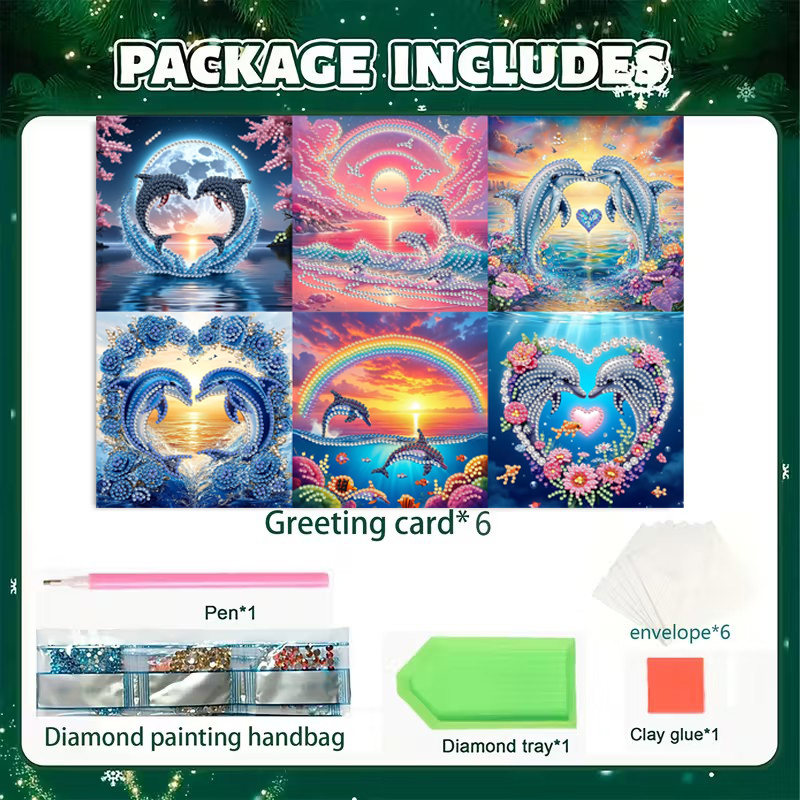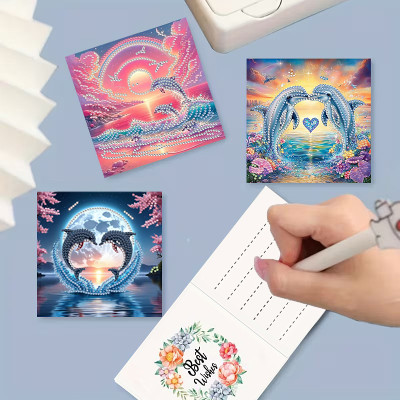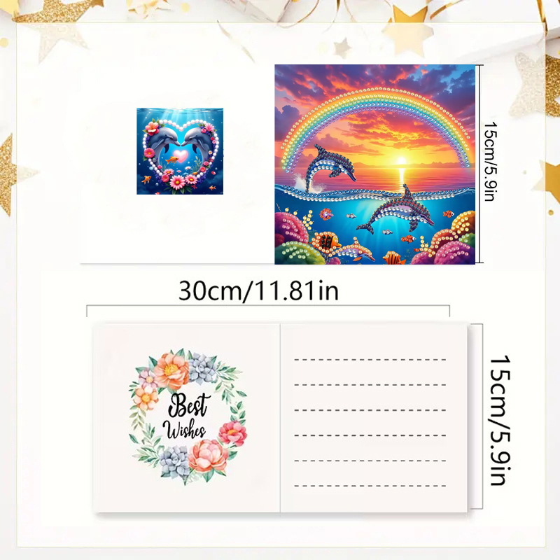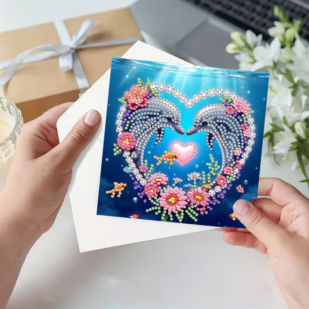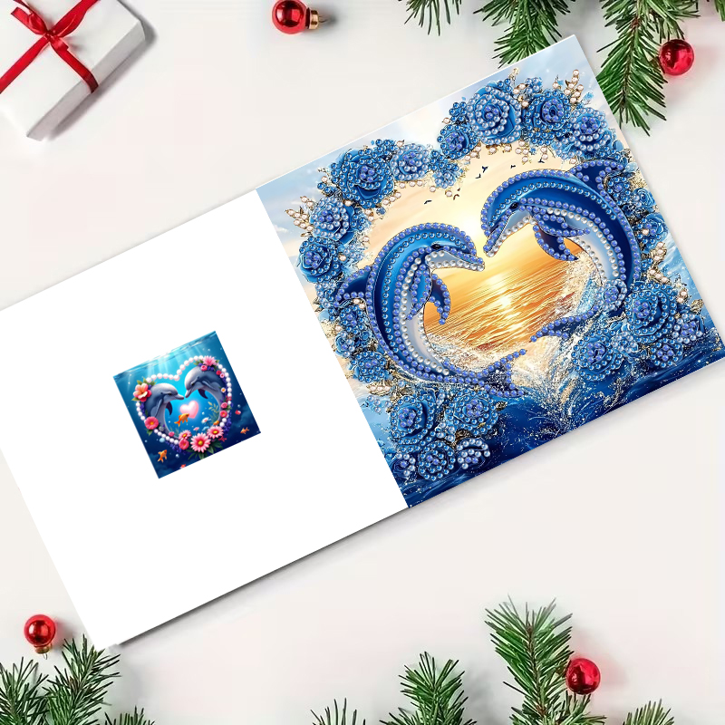 DIY Diamond Painting Kit Birthday Card Kit, Unique Animal Dolphin Pattern Design, Water Diamond Diamond Painting Art Mosaic Postcards, Festival Cards Perfect For Families, Friends, And Lovers, Handmad