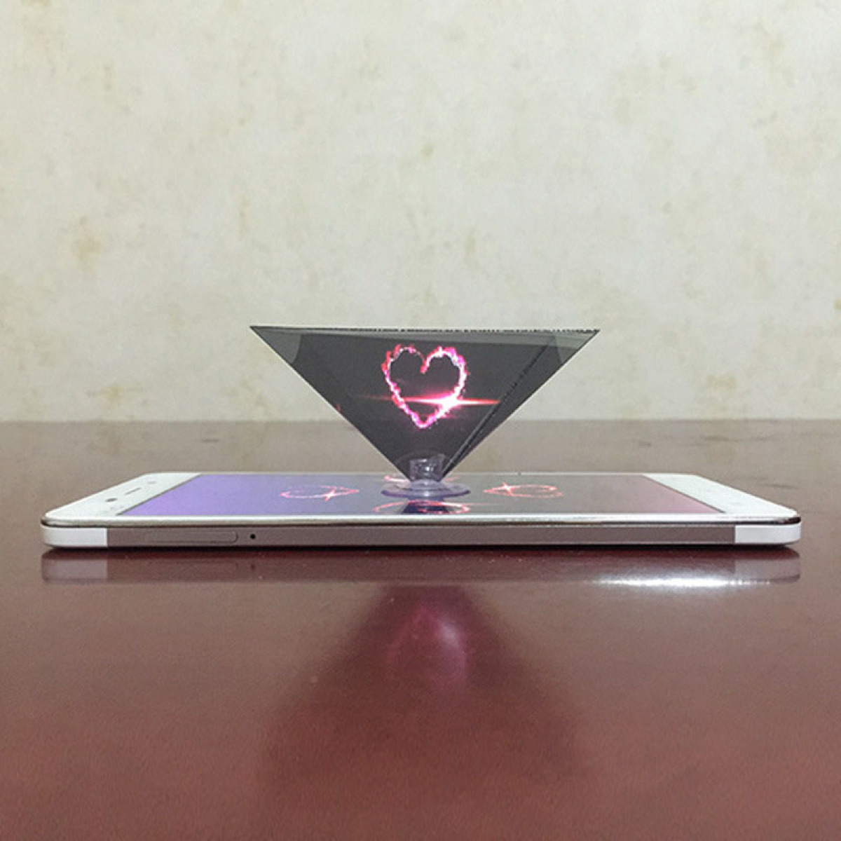 2. legen einfach der pyramide zu ihr telefon mit dem mitgelieferten saugnapf und sie sind bereit zu starten spielen eine pseudo-hologramm mit ihrem smartphone.