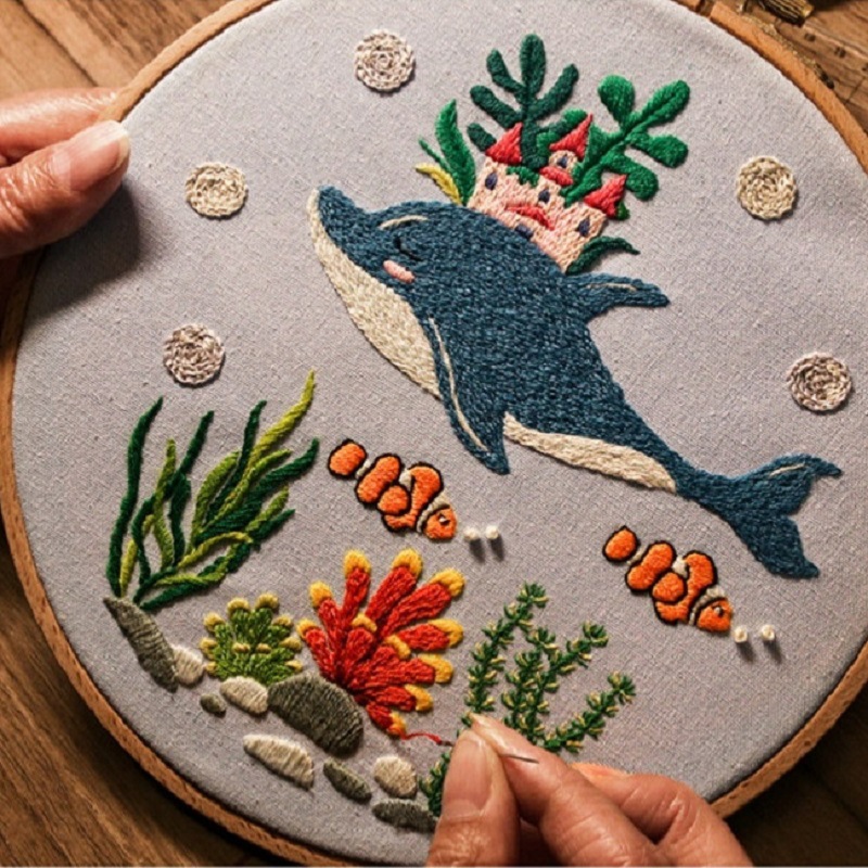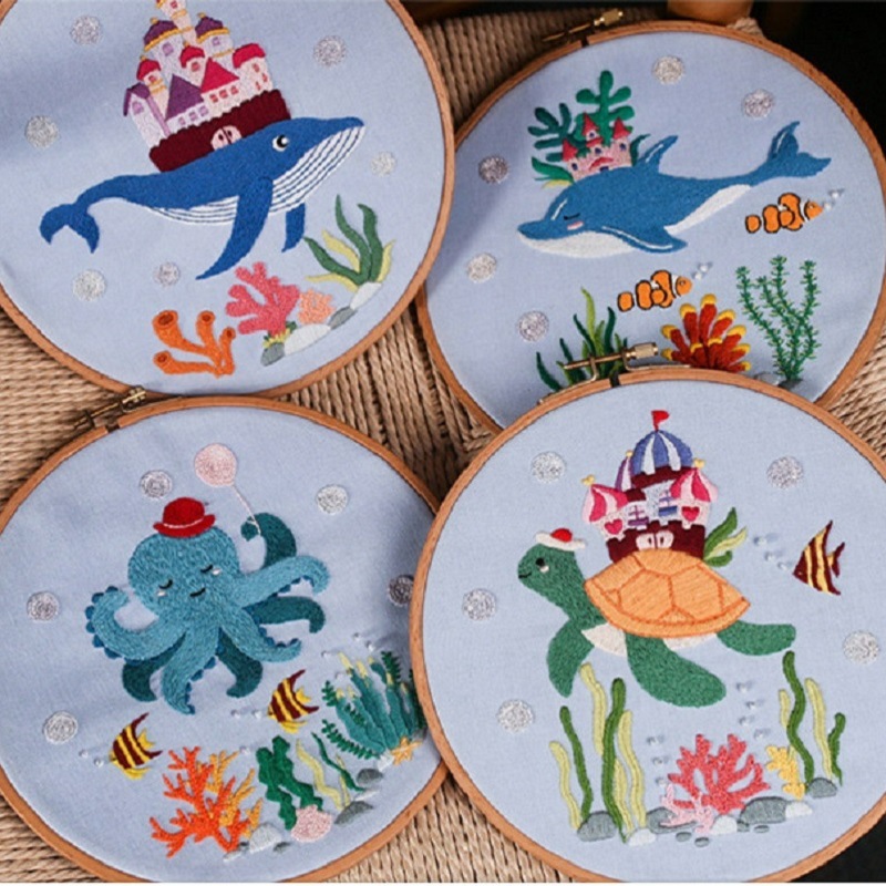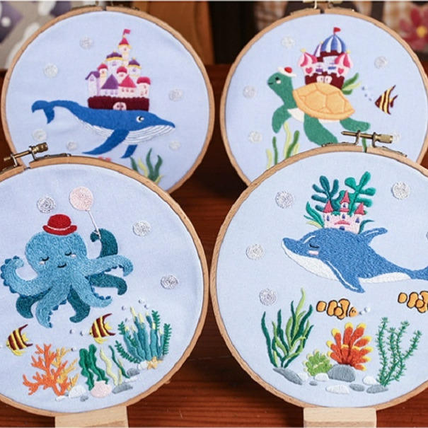 Embroidered fabric+embroidery needle+instruction manual+embroidery thread