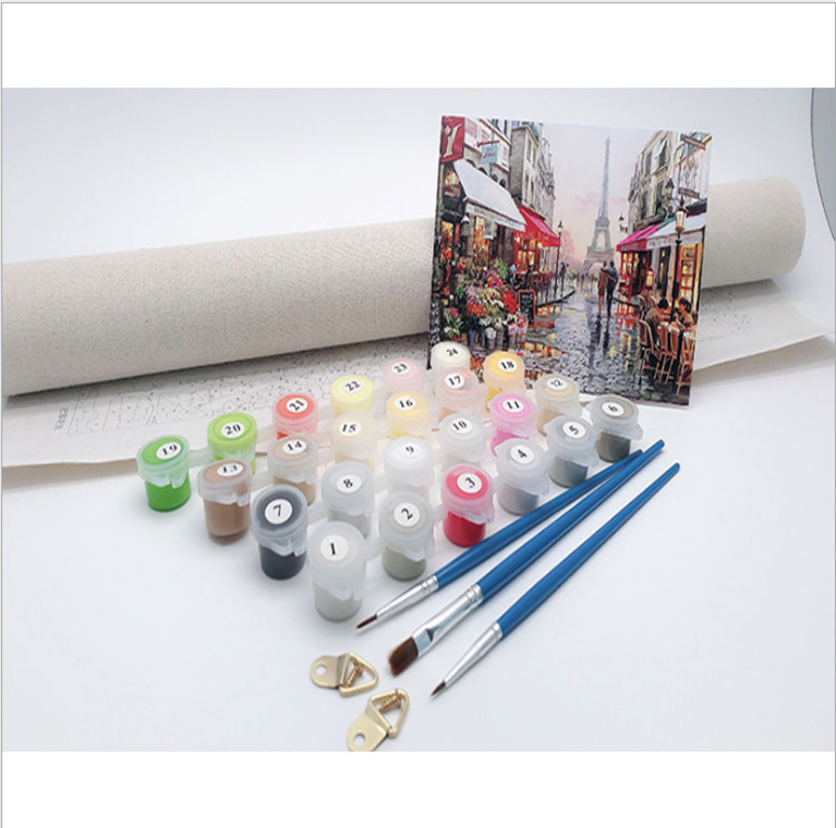 The numbers on the paint box and the canvas---correspond, acrylic paint, non-toxic and harmless,