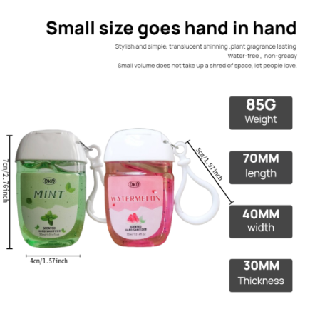 2pack 1.014fl.oz Mint Watermelon Hand Sanitizer with Hook, Cleans without Washing, Plant-Scented Long-lasting, Transparent and Shining, let people Love