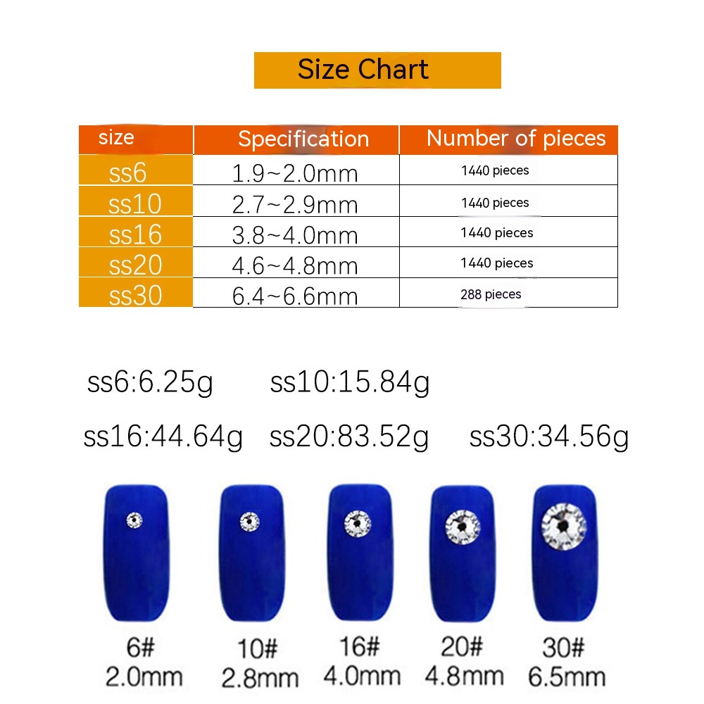 Color: 01 White, 02 transparent gray, 03 Black, 04 Lake Blue, 06 Cape Blue, 08 ink blue, 09 peacock blue, 11 light green, 12 dark green, 13 light yellow, 15 golden yellow, 16 Crystal yellow, 17 smoky yellow, 18 champagne, 19 orange red, 20 light red, 21 light pink, 22 Rose Red, 23 Red, 24 dark red, 25 light purple, 26 Deep Purple, 27 Peach red, 28 pale pinkish purple, 29 mine Black, 30 mine gold, 31 blue zircon, 32 magenta 33 colorful, 61 white AB,69 calx, 70 mine silver, 202 black AB, 205 red AB, 209 green AB, 217 orange AB, 05 light blue, 07 dark blue, 14 lemon yellow, 10 olive green