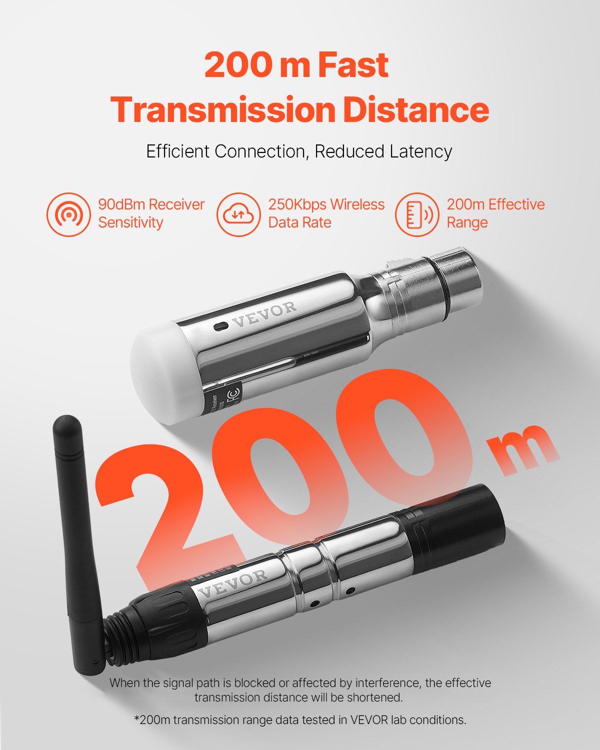 Rapid Data Transmission: With a 656 ft/200 m range, the DMX wireless system suits indoor music and stage performances. Its -90dBm sensitivity and 250Kbps wireless data rate provide quick lighting responses with minimal delay, delivering ideal light shows