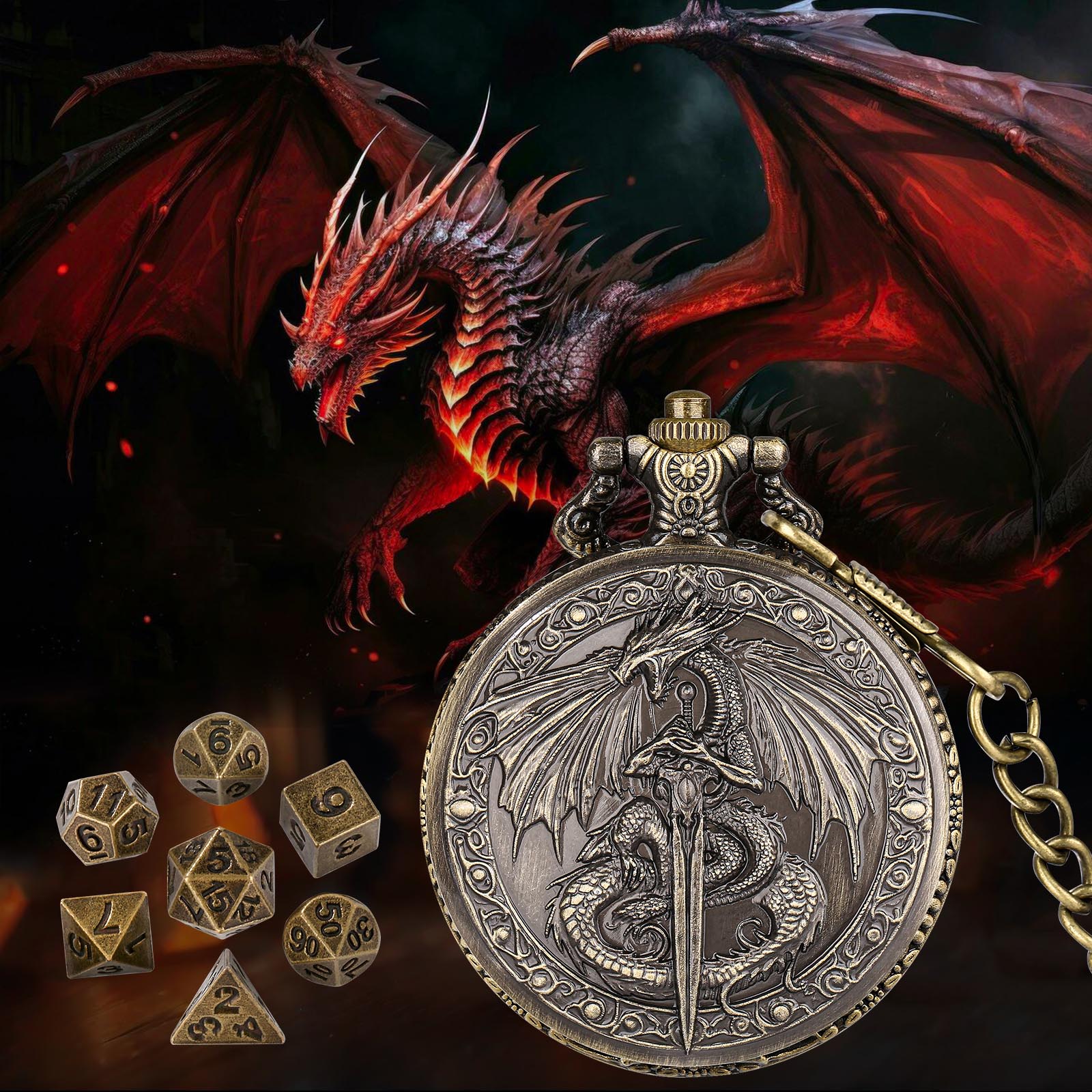 DND Style Mythical Winged Beast Sword Holding Relief Case, Retro Dice Storage Set, Desktop RPG Fantasy Accessories, High Quality Zinc Alloy DND Dice Suitable For Desktop RPG And Board Games