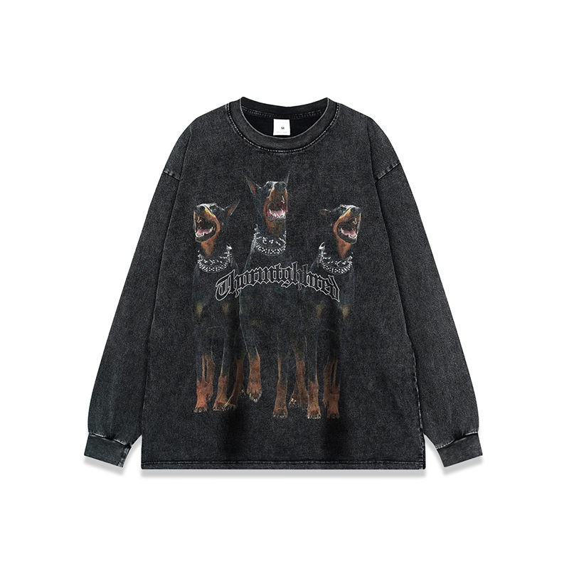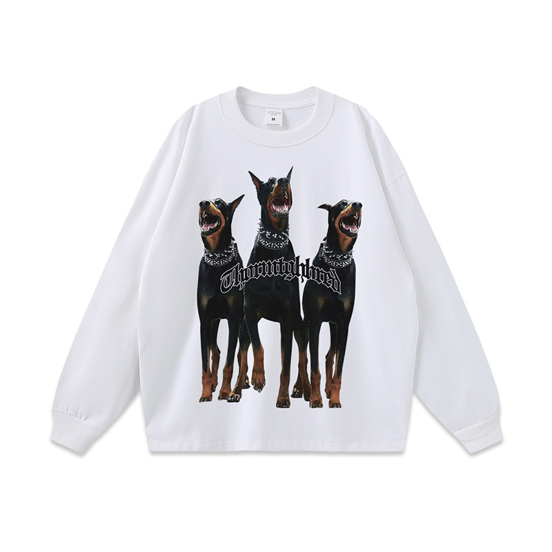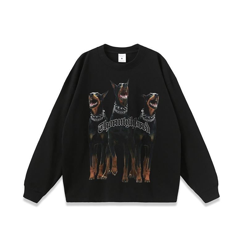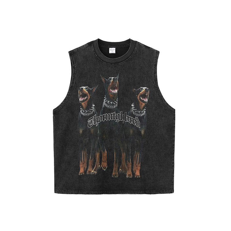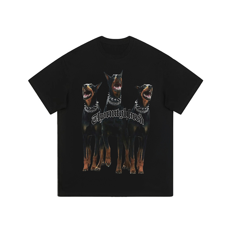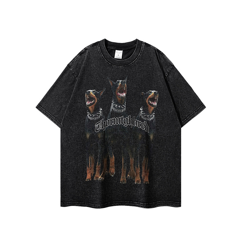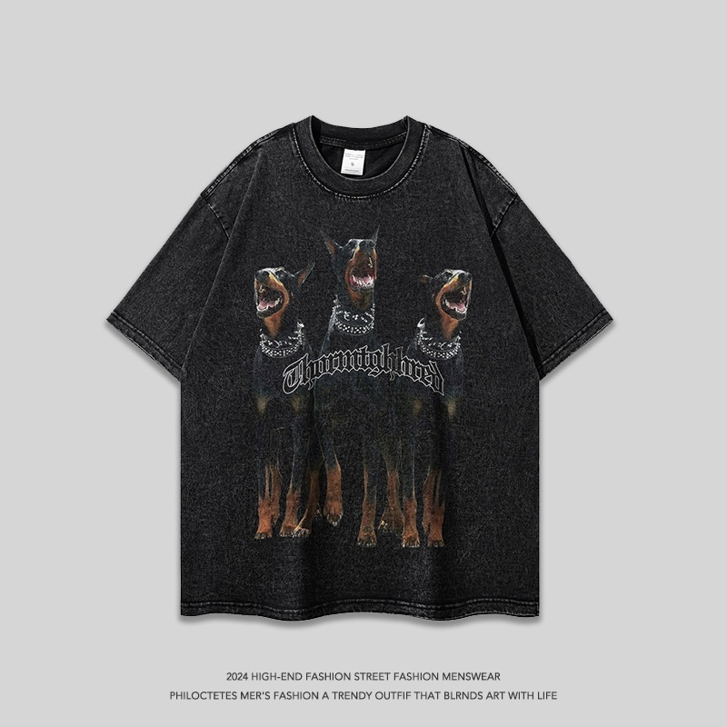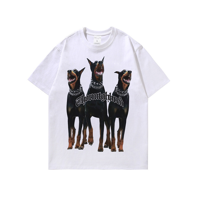 Doberman Pinscher Dog Head American High Street Print Casual Loose Men And Women Distressed T-shirt