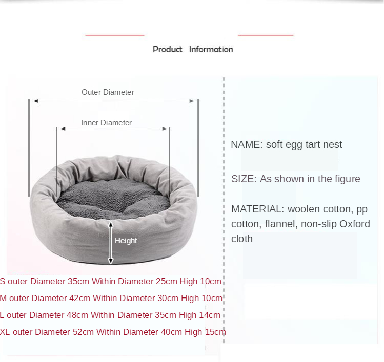 XL :diameter 50 cm, suitable for pets within 8 kg