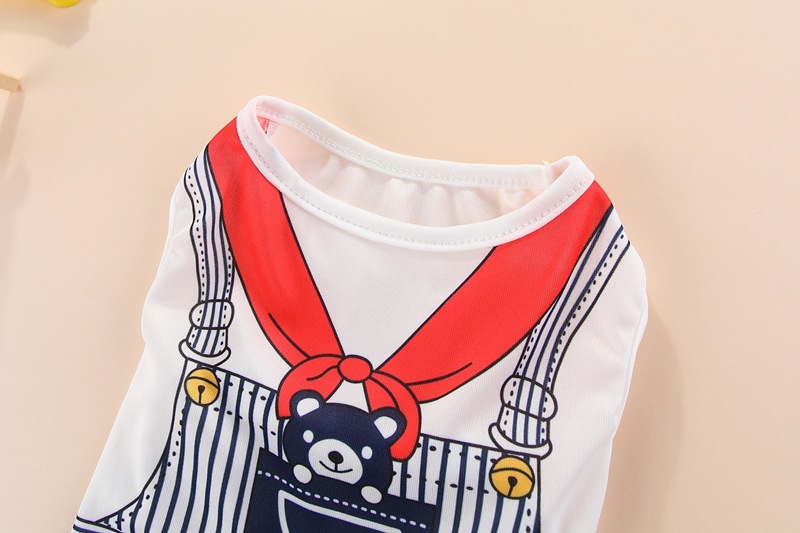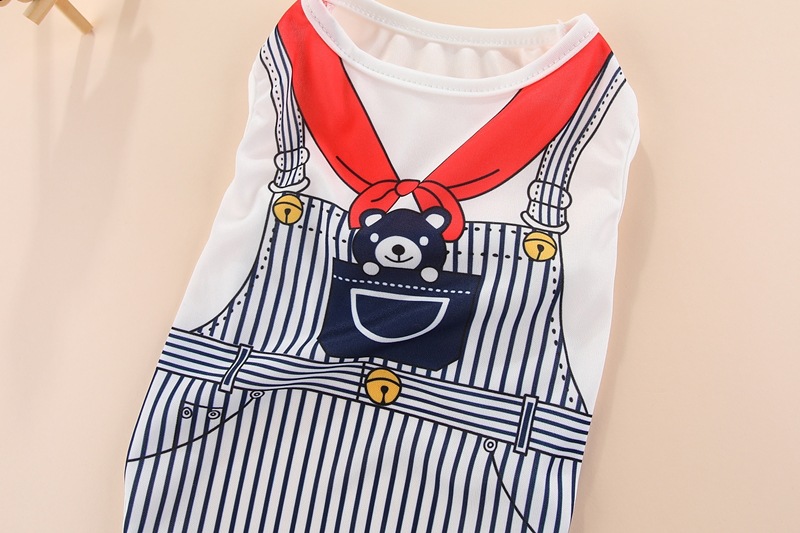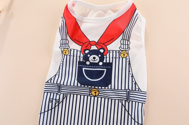 Color: striped puppy's vest royal blue, striped puppy's vest Rose Red, fake suspenders vest pink bunny, fake suspenders vest Blue Bear, small flower vest, big flower print vest, yellow rich vest, alien vest
