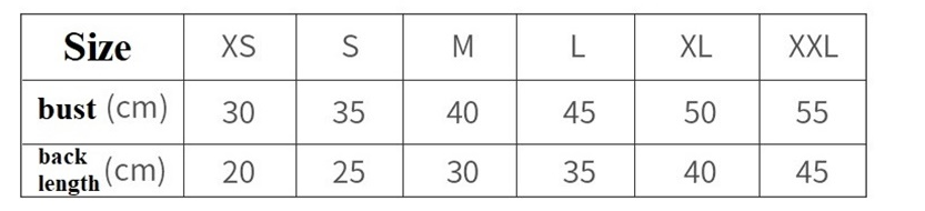 Size: XS code [please subject to back length and bust] S size [please subject to back length and bust] M size [please subject to back length and bust] L size [please subject to back length and bust] XL size [please Based on the back length and bust] XXL code [Please refer to the back length and bust]