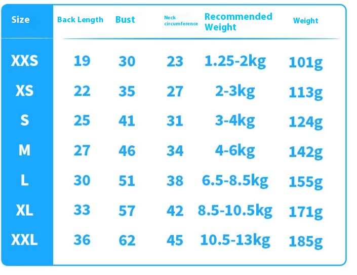 Size: XXS code, XS Code, S code, M code, L code, XL code, size XXL