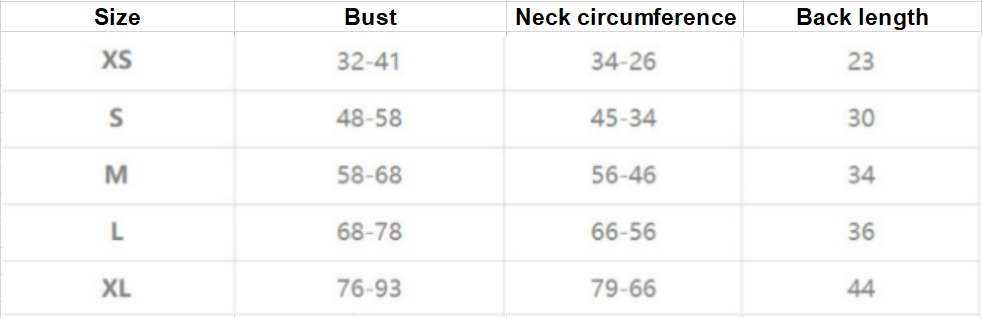 Size: XS (suitable for 3.5-7KG pets), S (suitable for 7-13KG pets), M (suitable for 12-20KG pets), L (suitable for 19-30KG pets), XL (suitable for 29.5-49.5KG pets)