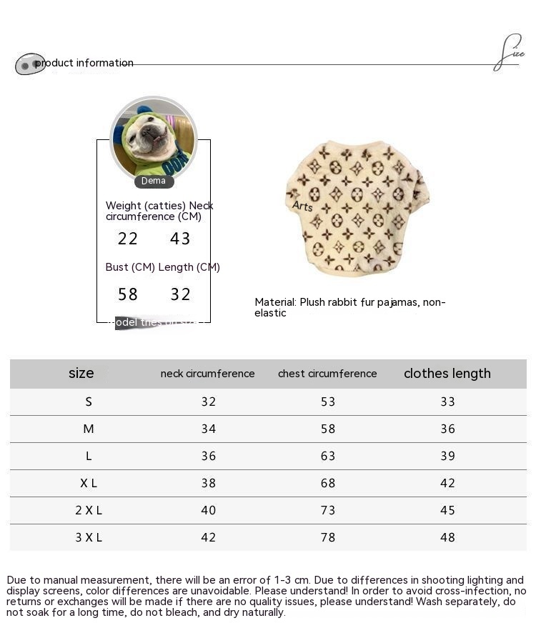 Size: S size recommended 4.00kg-6.00kg,M size recommended 6.00kg-8.50kg,L size recommended 9.00kg-11.50kg,XL size recommended 11.50kg-14.00kg,2XL size recommended 14.50kg-17.00kg,3XL size recommended 17.00kg-20.00kg