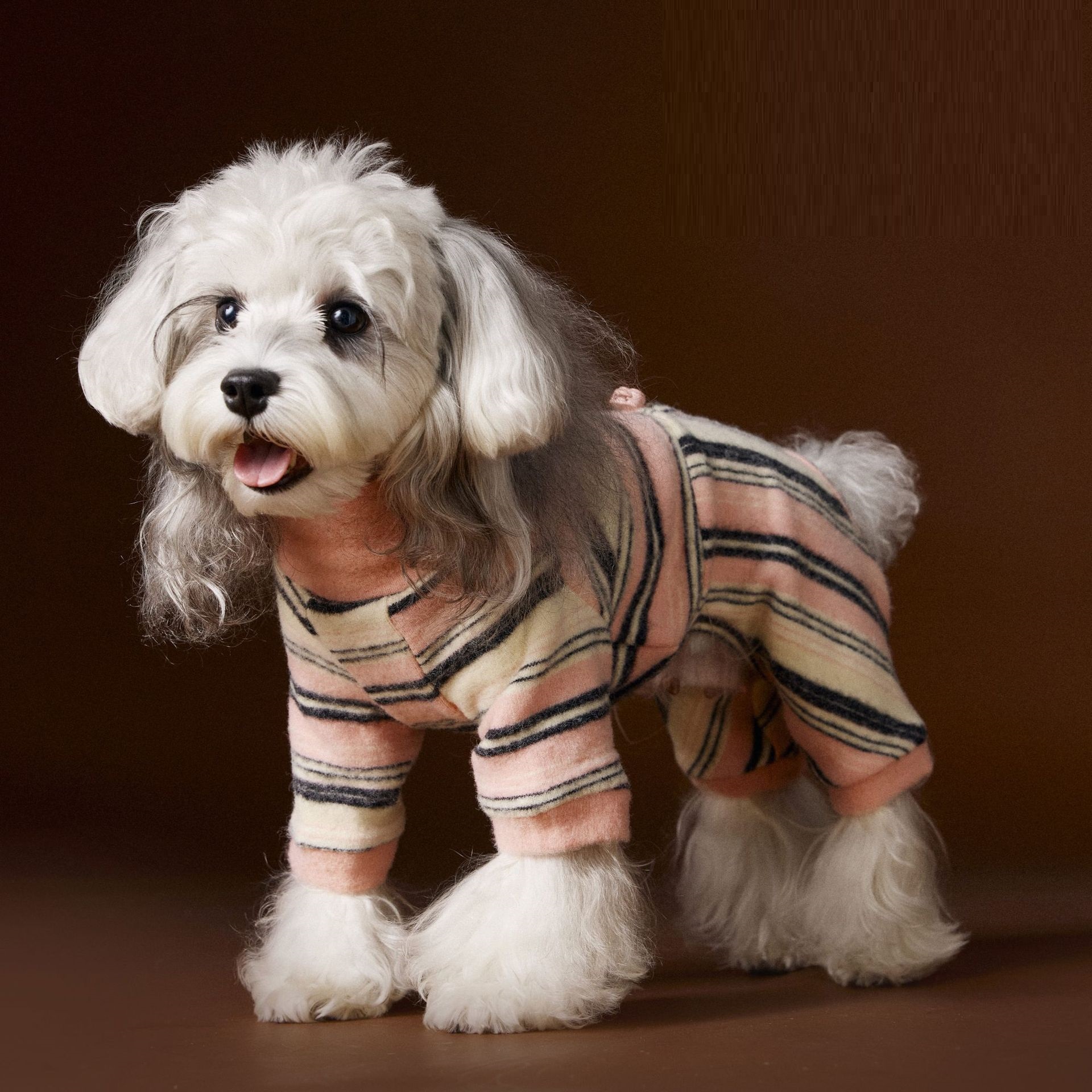 Dog Clothes Four-leg Warm Striped Thick Base Schnauzer Teddy Bichon Maltese Sweater