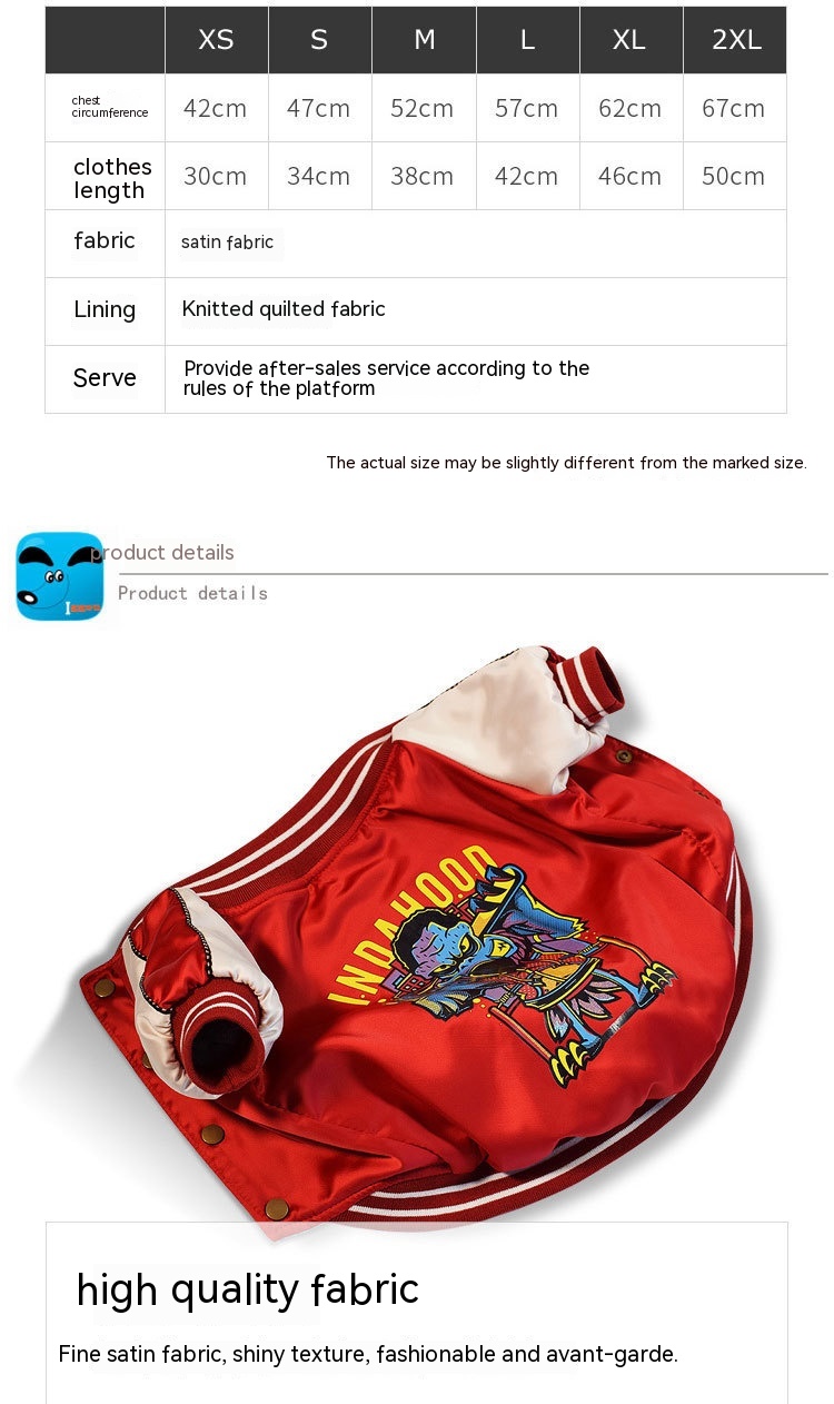 Size: XS (chest circumference 40 back length 26),S (chest circumference 45 back length 29),M (chest circumference 50 back length 32),L (chest circumference 55 back length 36),XL (chest circumference 60 back length 40),2XL (chest circumference 65 back length 44)