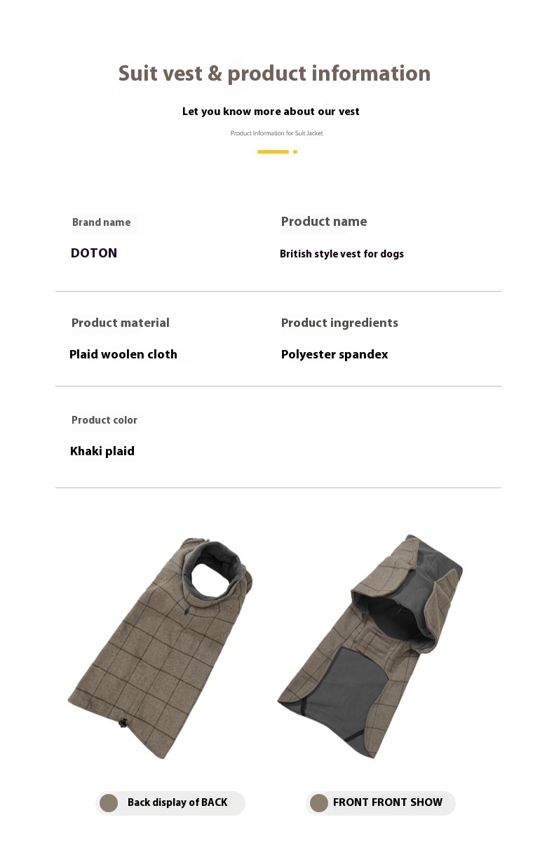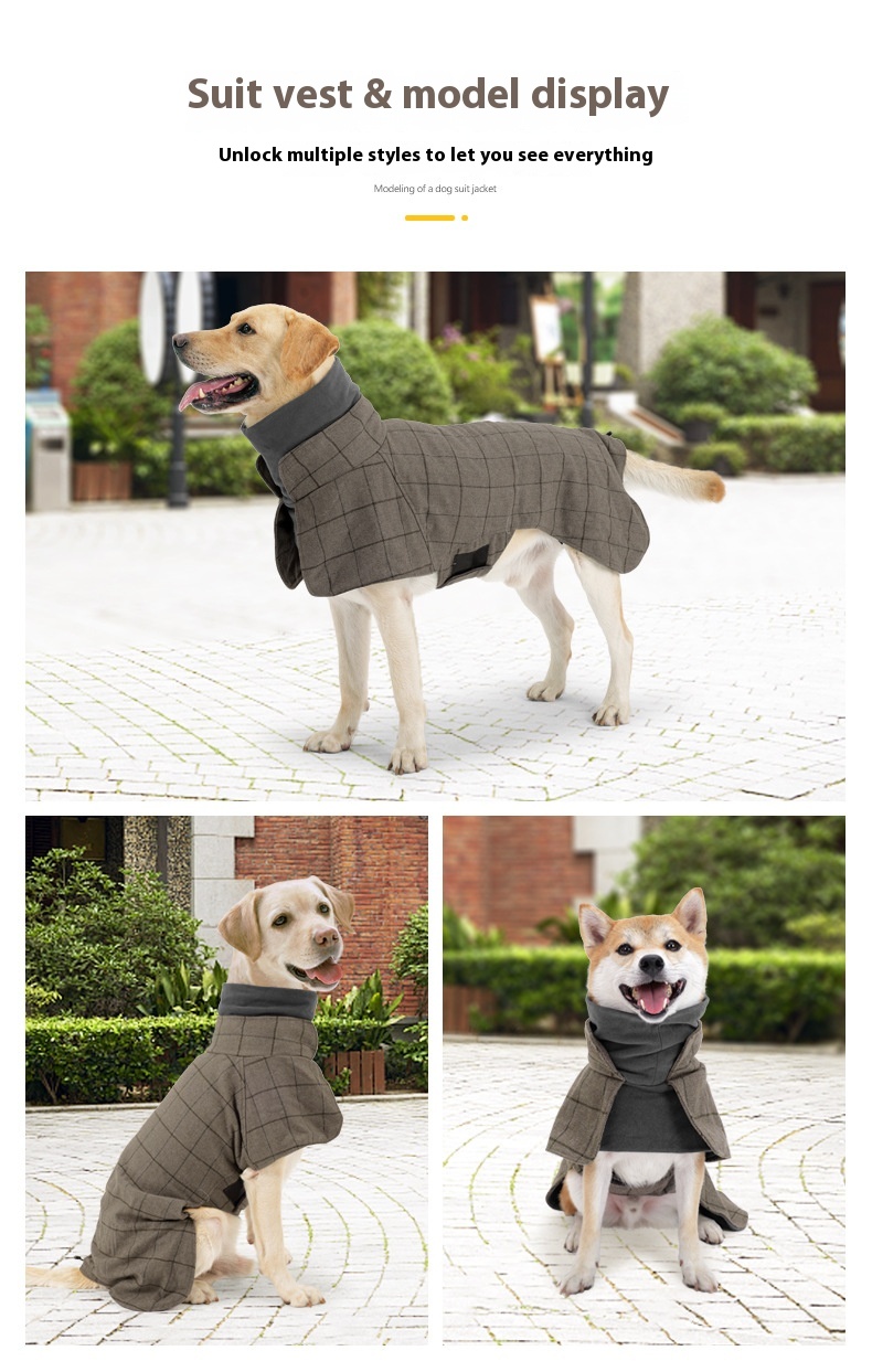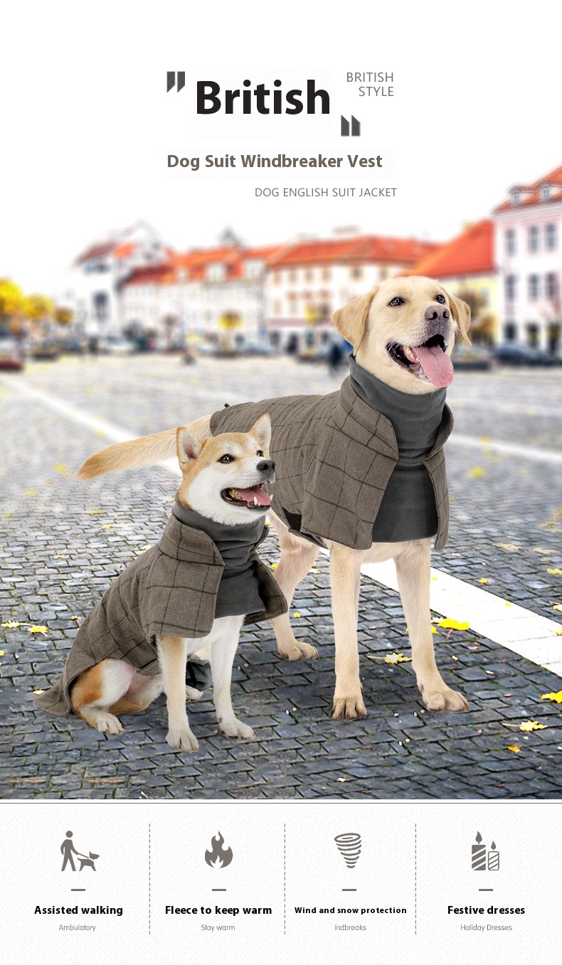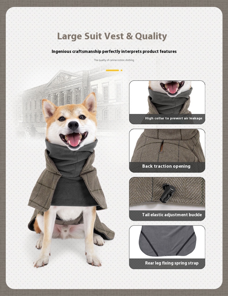 Dog Cotton Clothing British Style Dog Suit Vest Cold-proof Warm Dog Clothes Dog Cloak