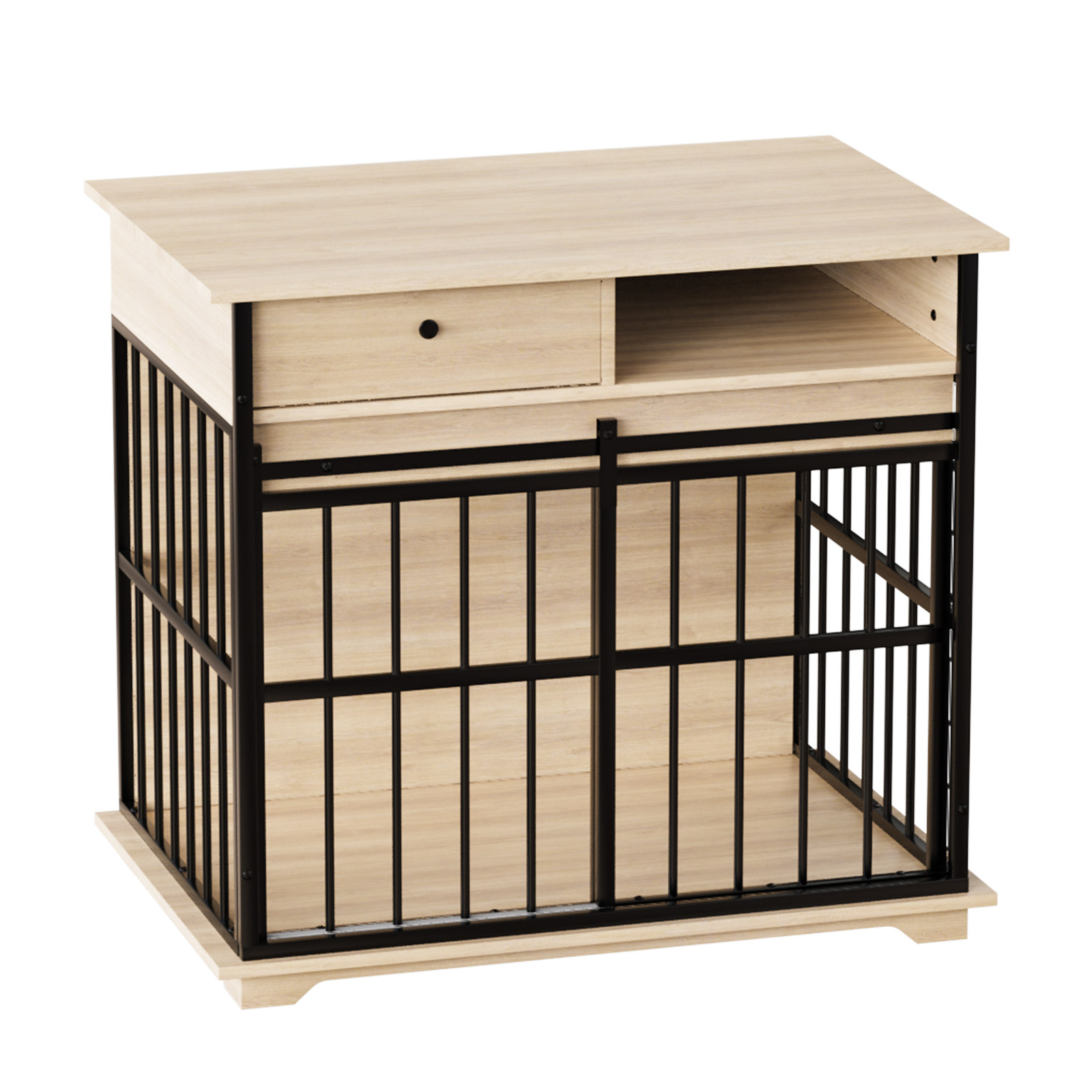 Specifications: Color:Black/Wooden; Material: Metal and MDF ; Product Dimensions:35.43x23.22x33.58 inches; Storage: yes ; Weight :69.00LB ; Package Included:1x Dog Crate.