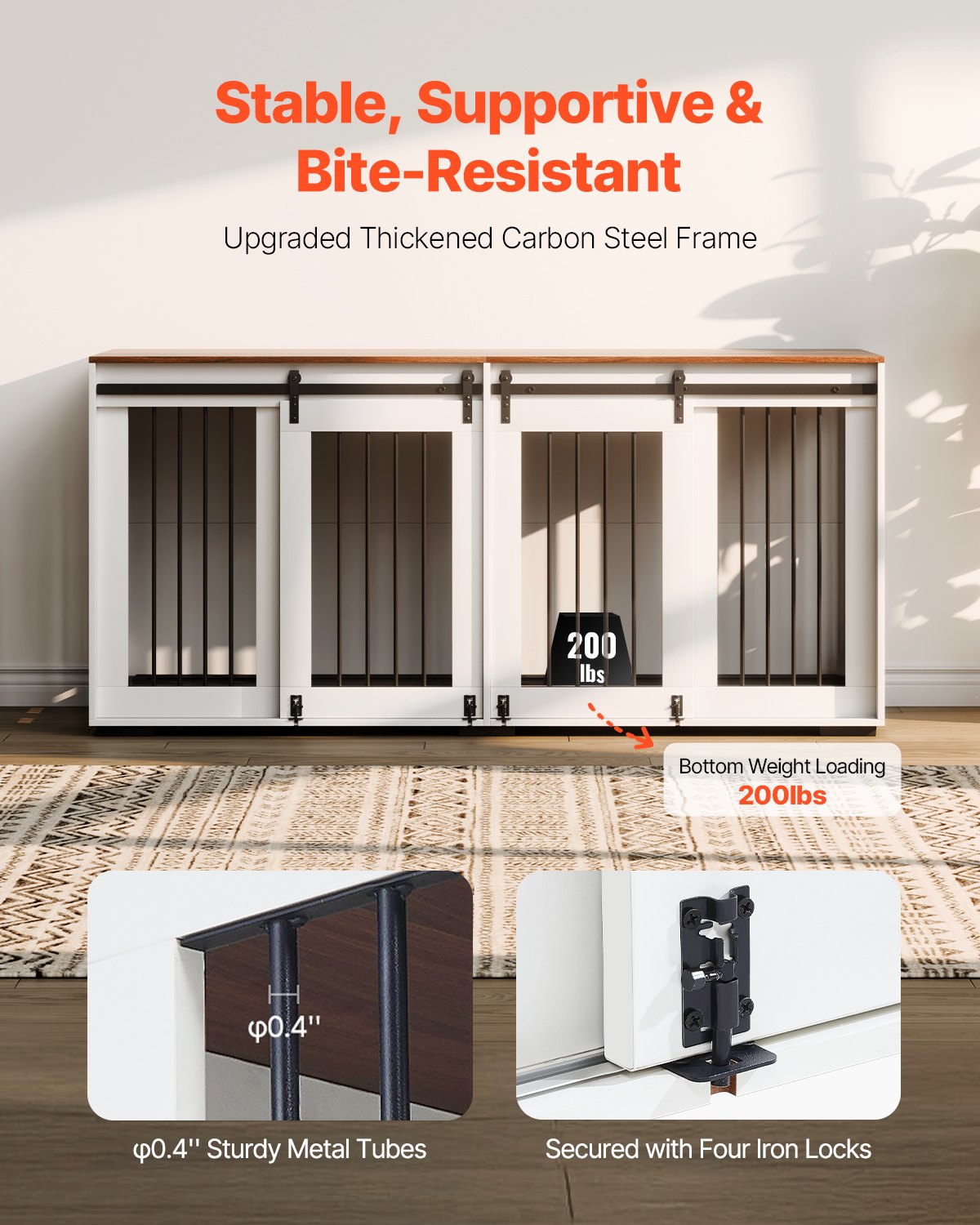 Reinforced Frame: Built with φ0.4'' steel tubes for strong support and durability, the dog crate furniture features bone-shaped locks to prevent pets from escaping. Made with P2-grade particle board that meets formaldehyde standards for added health safety.