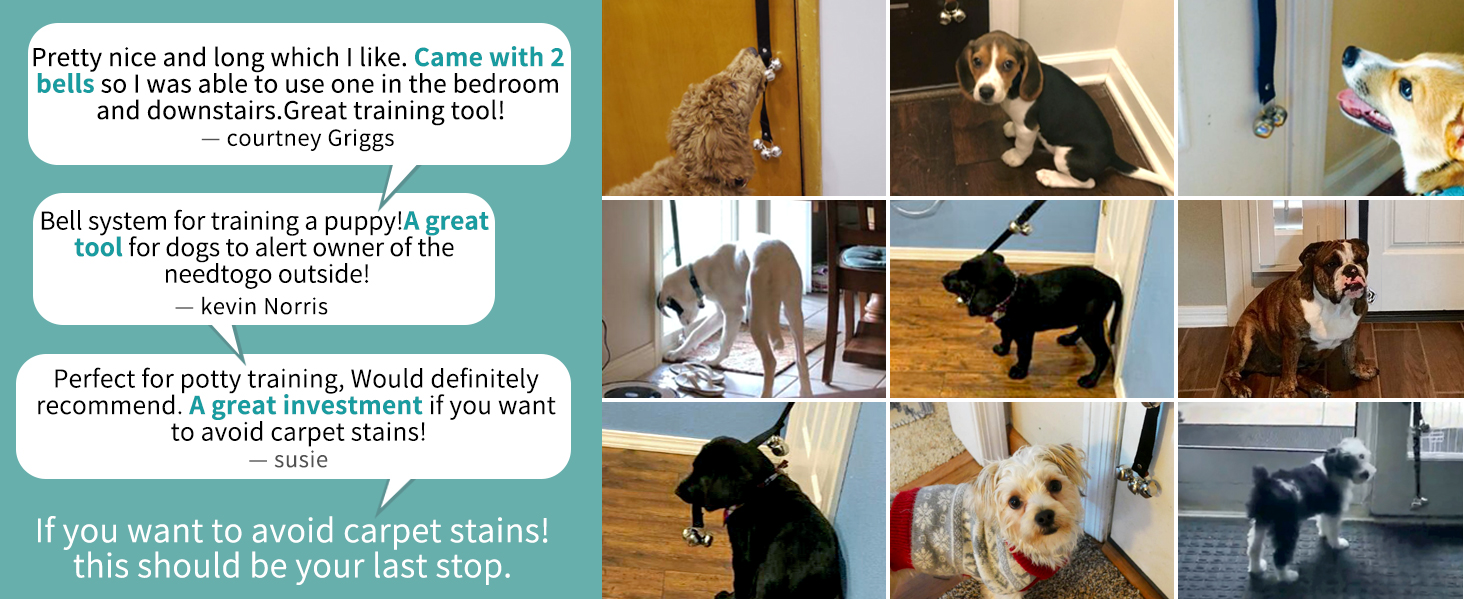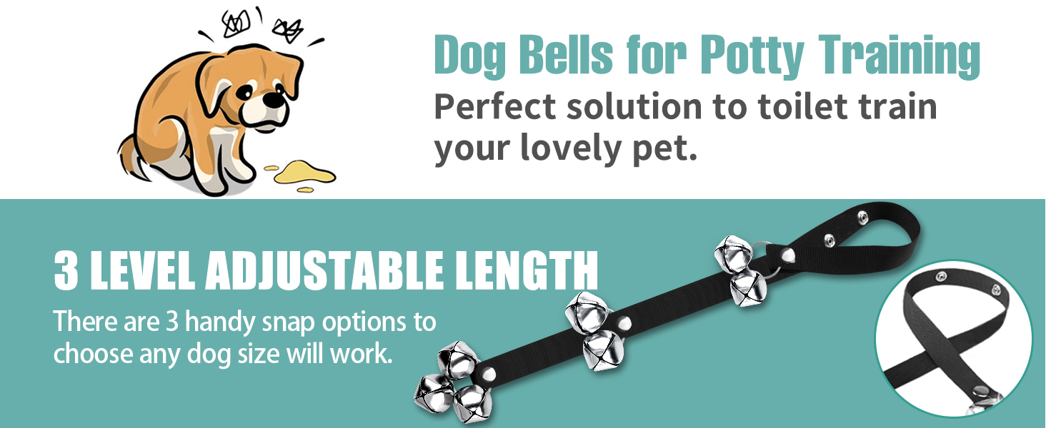 Adjustable Length - This upgraded design gives you 3 levels of length adjustment compared to the common two lengths of bells. This easily adjusts to the length at the bottom of the door or wall depending on your dog's size or the height of the door. Small, medium, large and large dogs all love our dog bells!