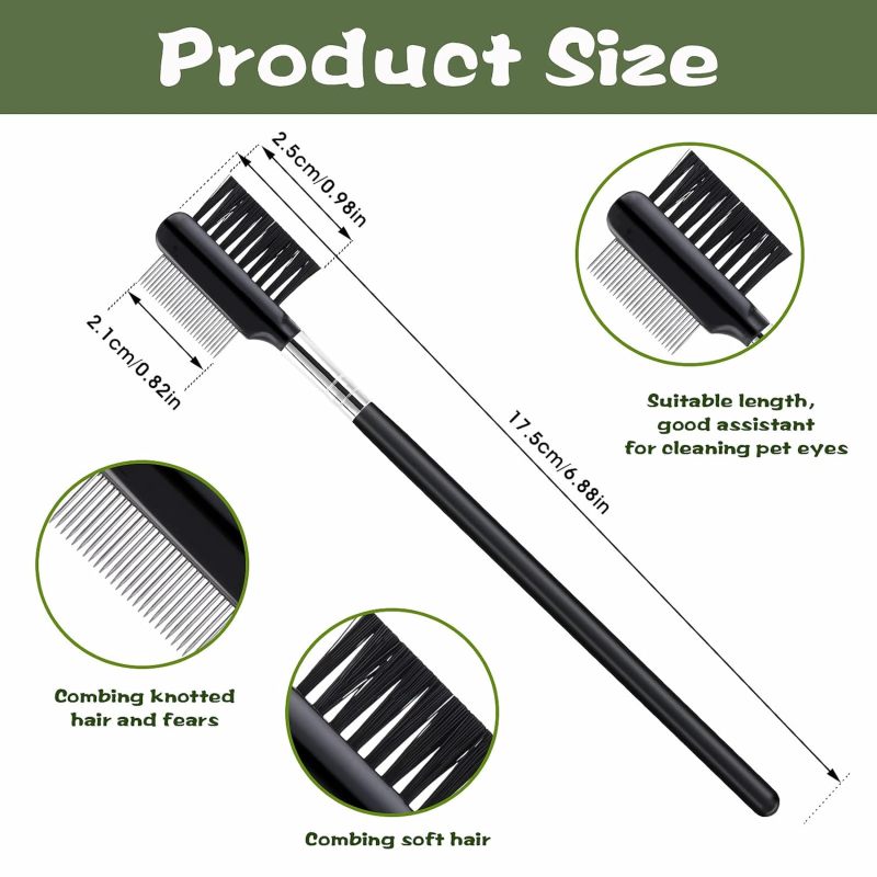 【More Uses】: The dog eye booger remover can not only be used as a tear-cleaning brush for most small pets but also can be used to comb your pet's eyebrows and eyelashes. Comes with two combs for use with your pet.