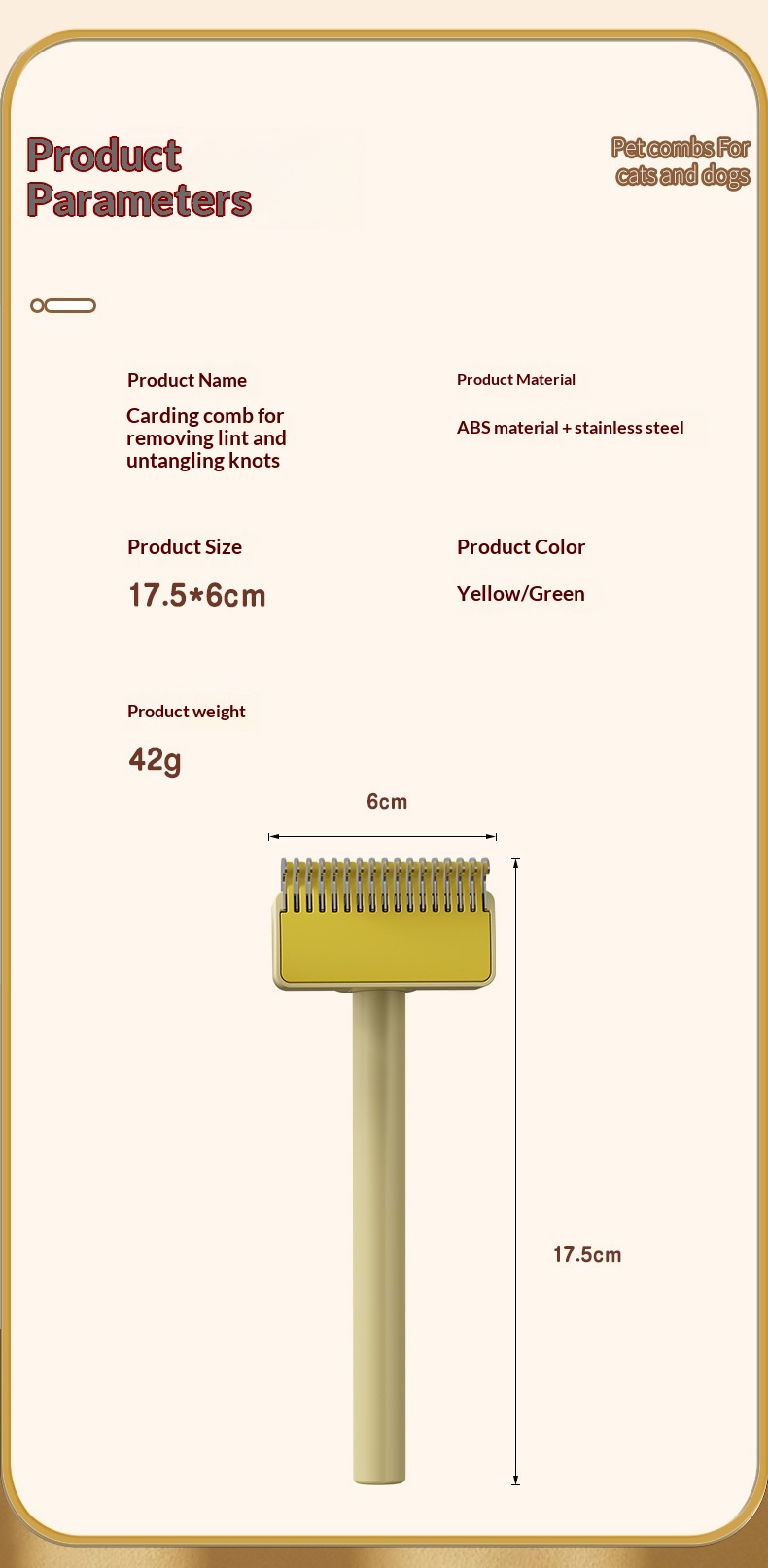Specifications: Pet Knot-Untangling Comb – [Green], Pet Knot-Untangling Comb – [Yellow]