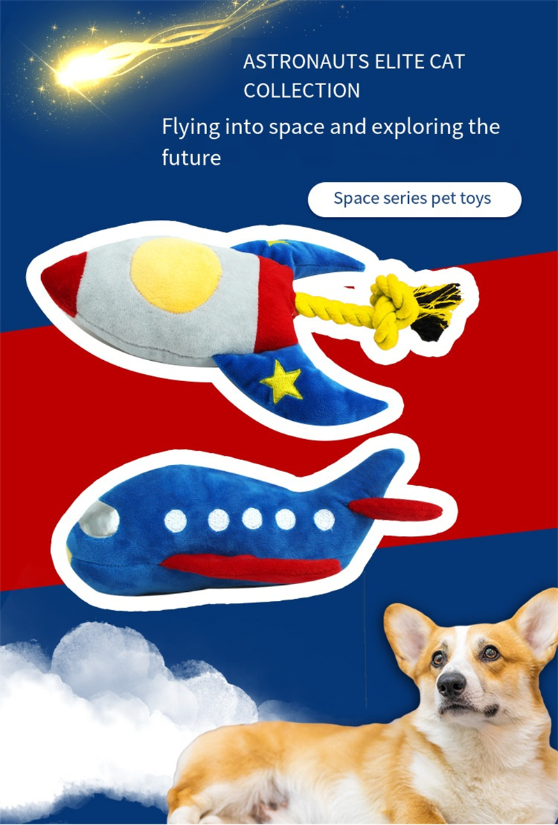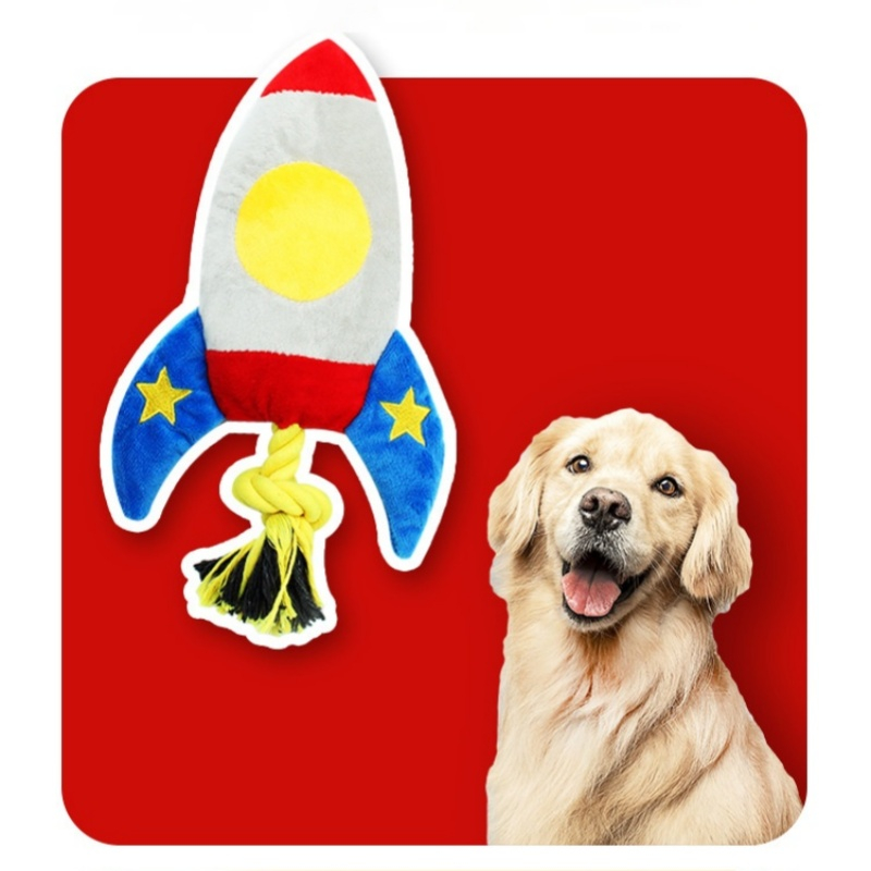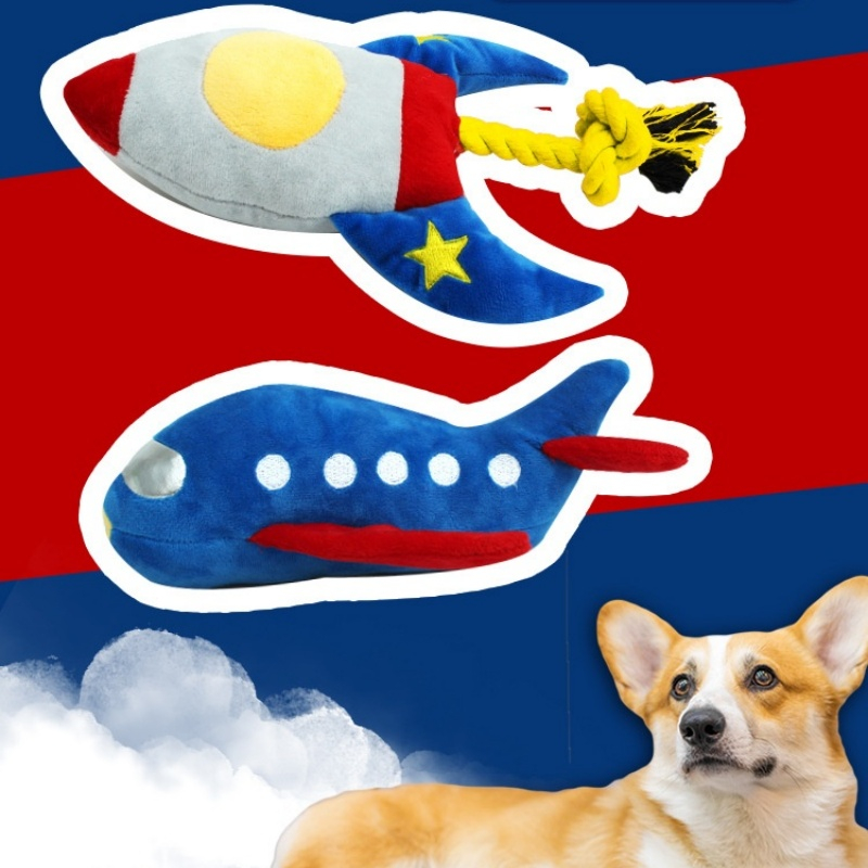 Pet Toy Cartoon Airplane Rocket Shape Dogs Cats Plush Doll Bite-resistant Pet Squeaky Toy Pet Supplies