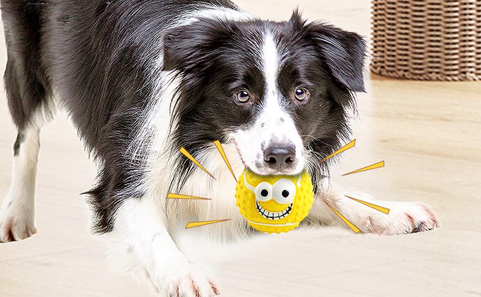 Nice giftt: dog ball toy allows your pet dog to grow up happily and healthily by stimulating their natural instincts and providing them with physical and mental exercise. It is also a great giftt for your pet dog, as it has a cute smile ball design that will make them smile too.