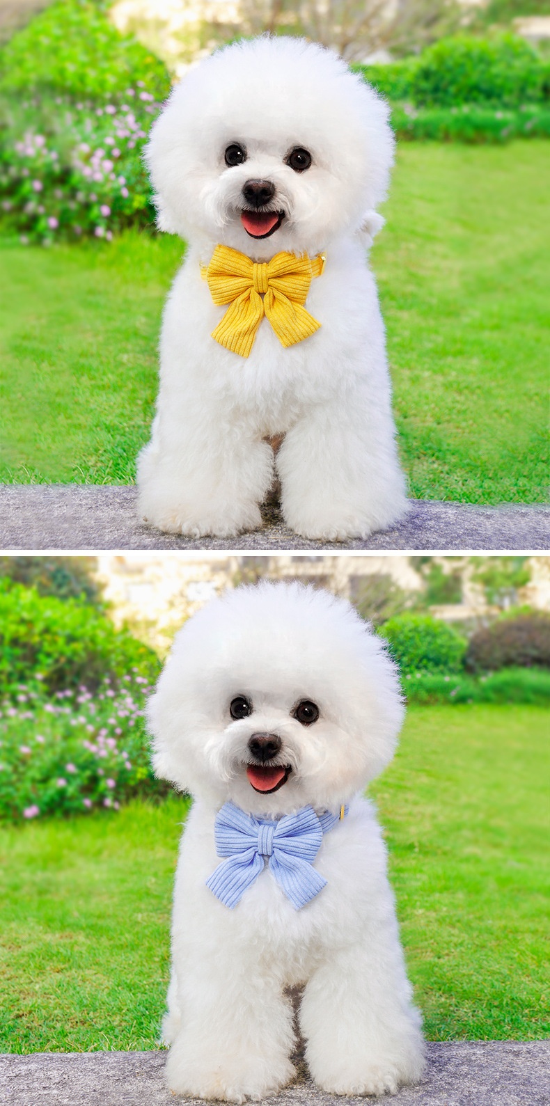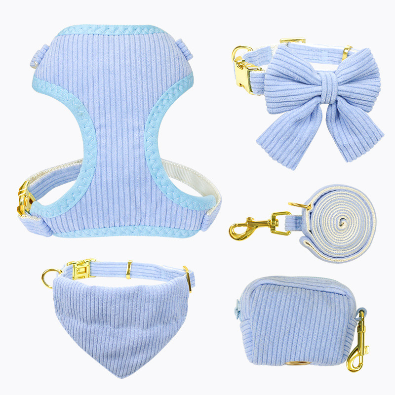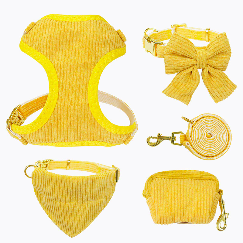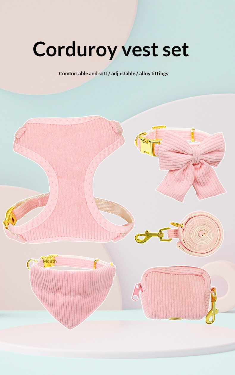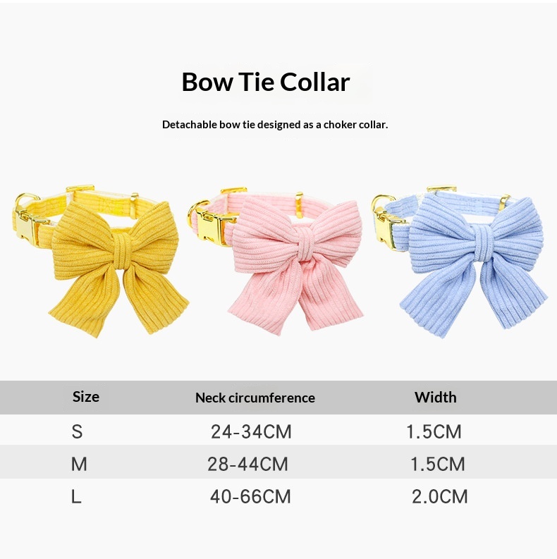 Colors: Pink (3-piece set as shown in the picture), Blue (3-piece set as shown in the picture), Yellow (3-piece set as shown in the picture), Pink (5-piece set as shown in the picture), Blue (5-piece set as shown in the picture), Yellow (5-piece set as shown in the picture), Pink (2-piece set as shown in the picture), Blue (2-piece set, as shown in the picture), Yellow (2-piece set as shown in the picture), Pink single bow collar, Yellow single bow collar, Blue single bow collar, Pink single chest strap, Blue single chest strap, Yellow single chest strap, Pink triangular scarf as shown in the picture, Blue triangular scarf as shown in the picture, Yellow triangular scarf as shown in the picture.