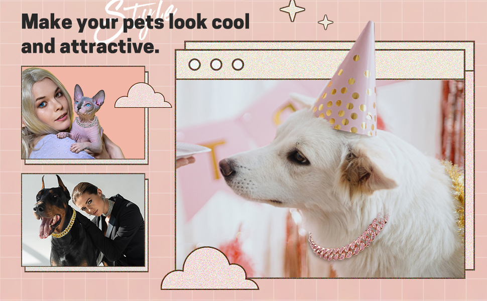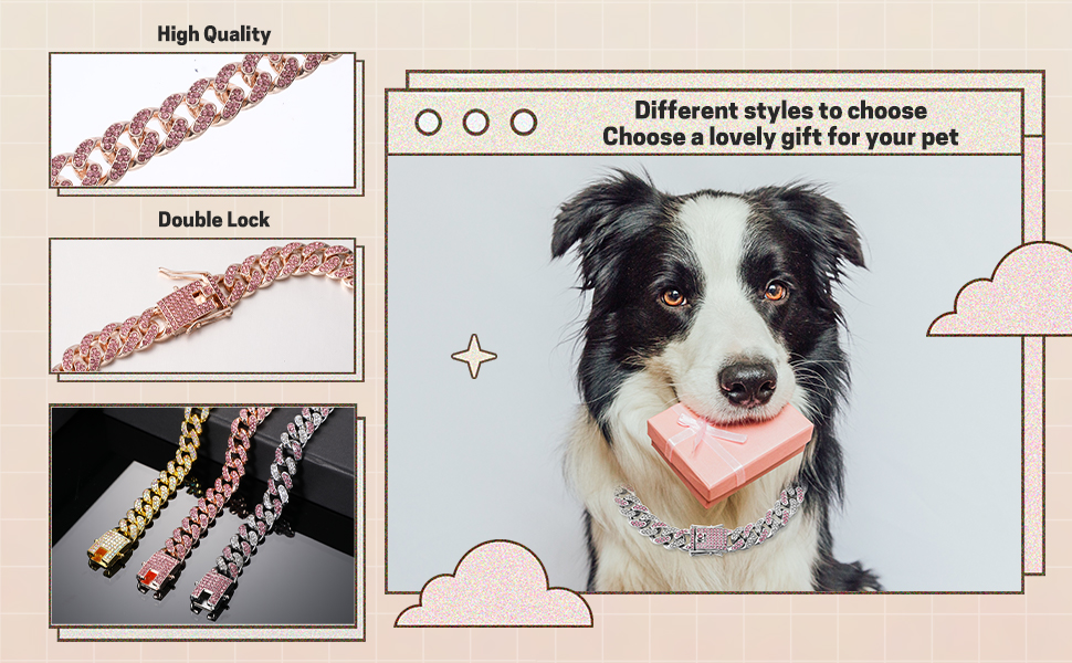 Dog Necklace Metal Cat Chain Pet Crystal Collar Jewelry Accessories For Small Medium Large Dogs Cats