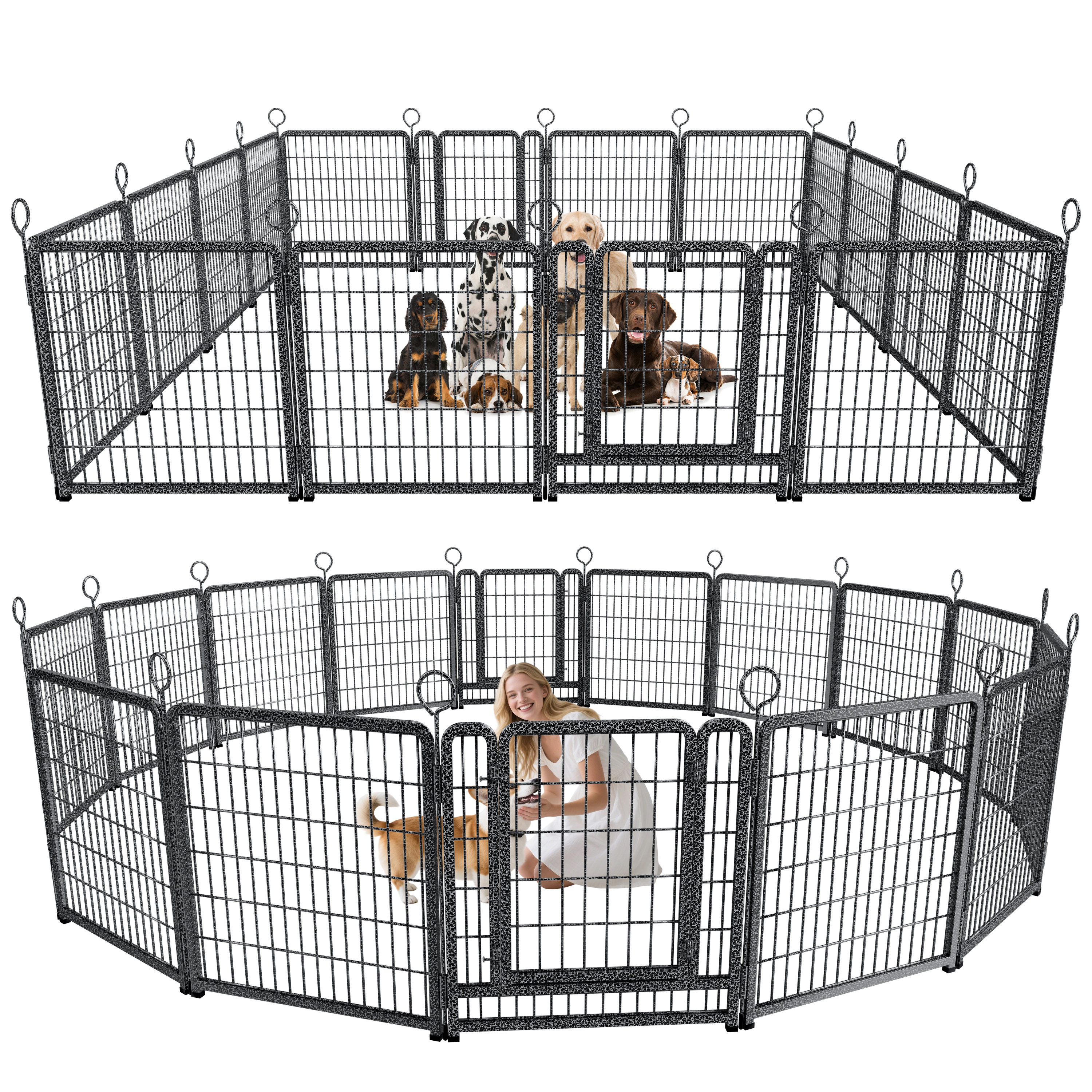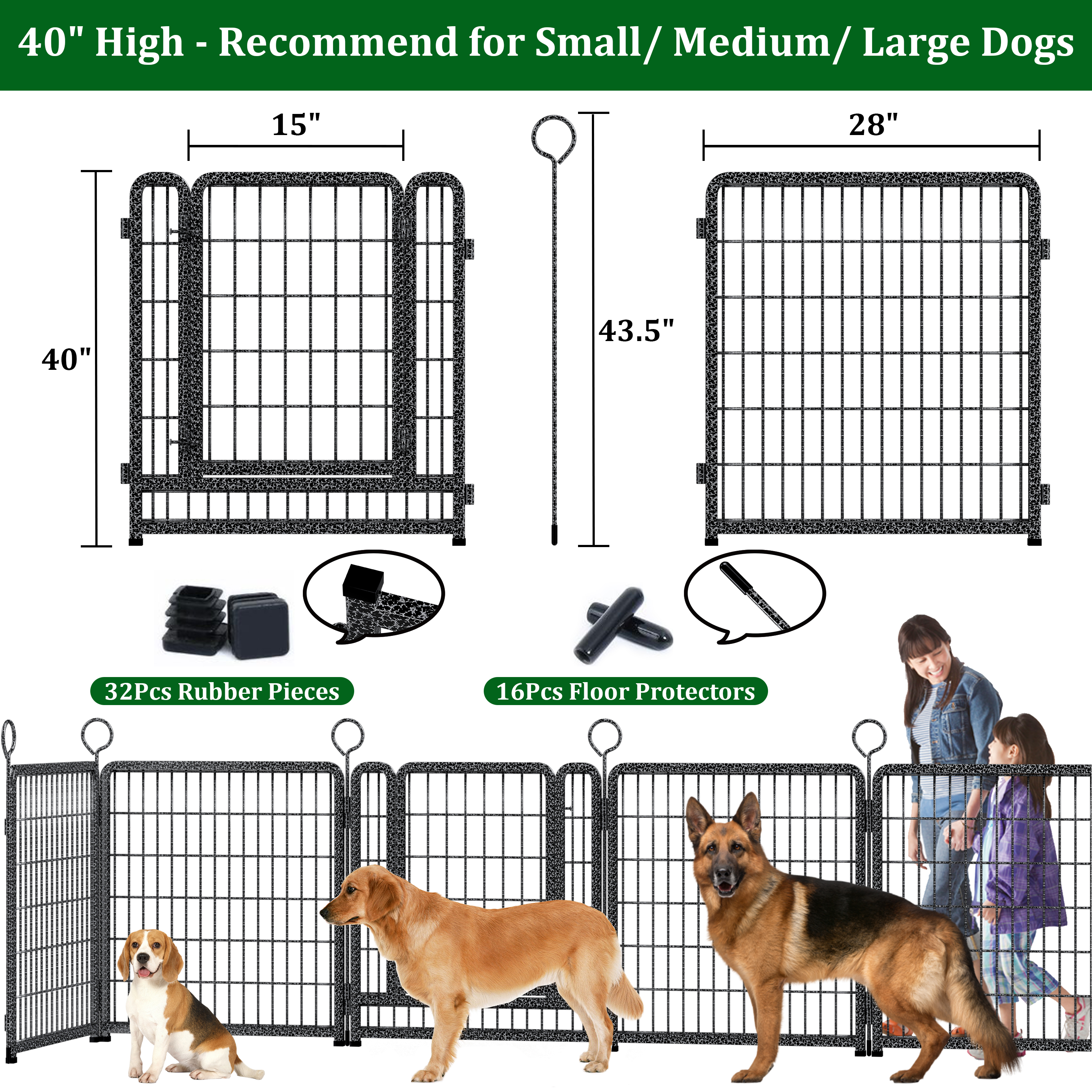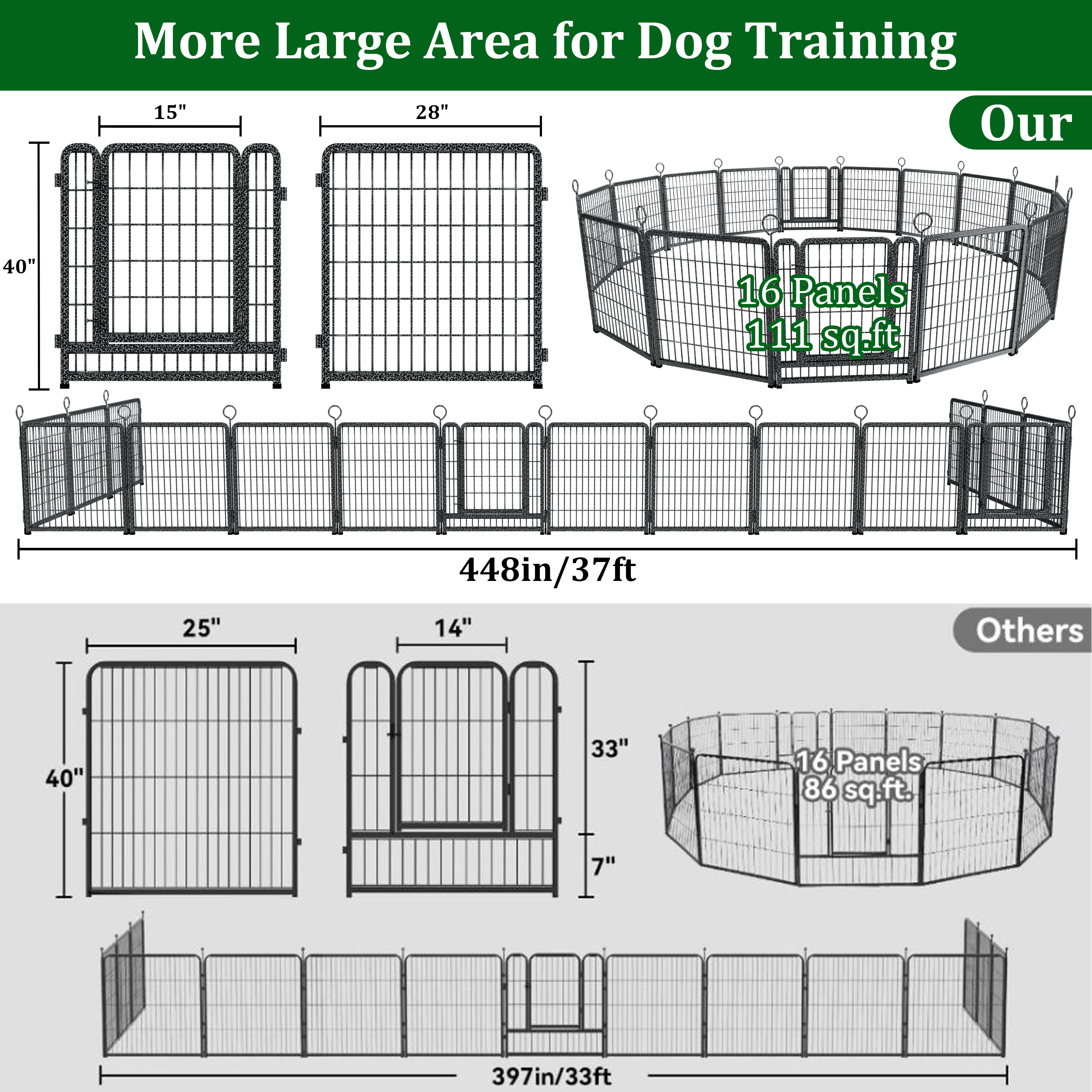 Product Name:Dog Playpen Outdoor Extra Wide 16 Piece Panels Heavy Duty Dog Fence 40" Height Anti-Rust with Doors Portable for RV Camping Yard, Total 37FT, 111Sq.ft, Snowy Black