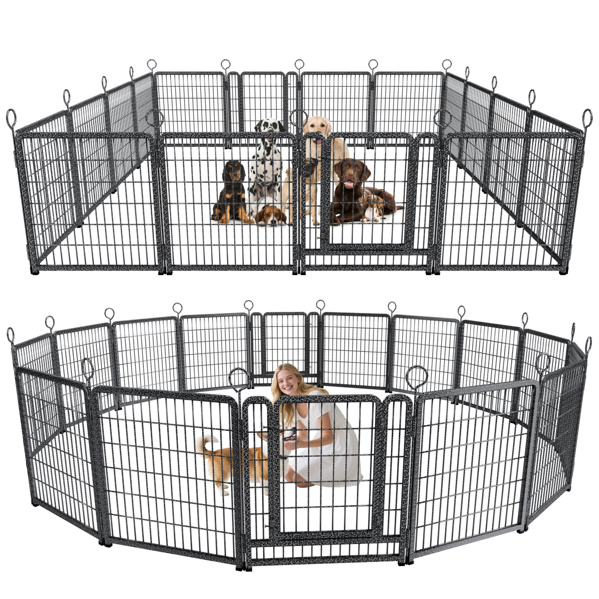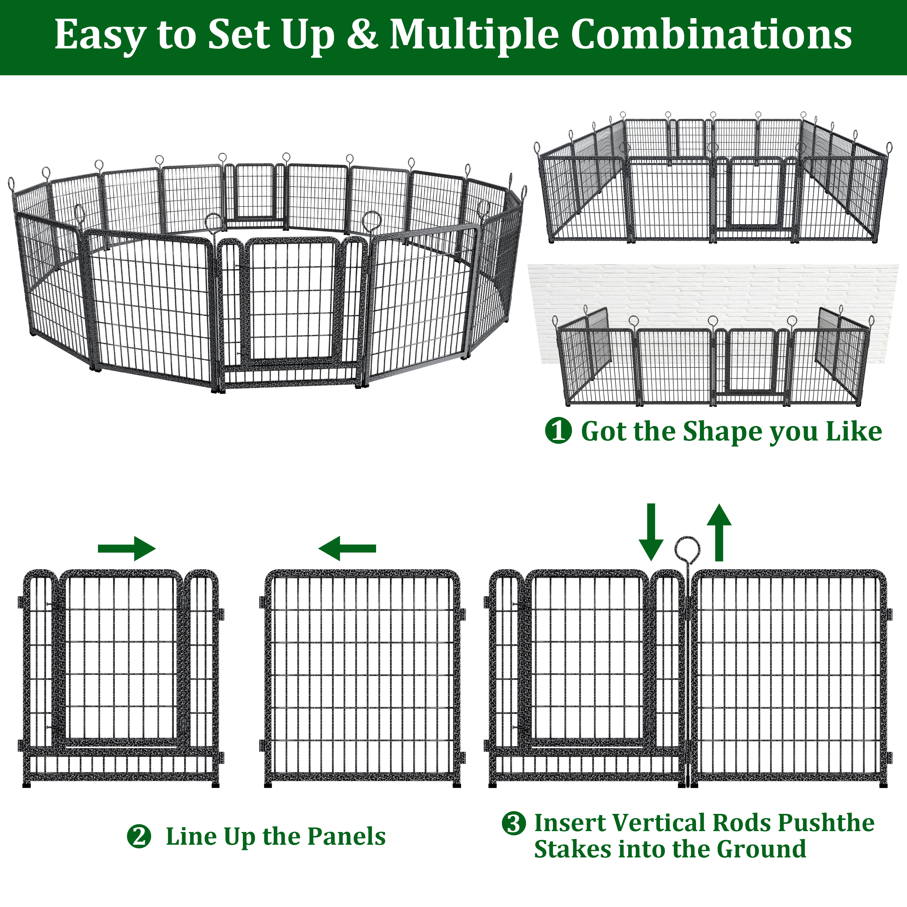 - 【Easy to Set Up & Multiple Combinations】The panels come with individual poles to connect them together, easy to set up or take it down in minutes, dog fence can do multiple combinations and configurations, dog playpen for the yard easily conforms to different shapes according to your garden or room, circle, polygon, irregular, etc