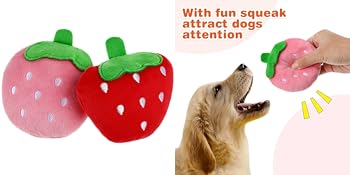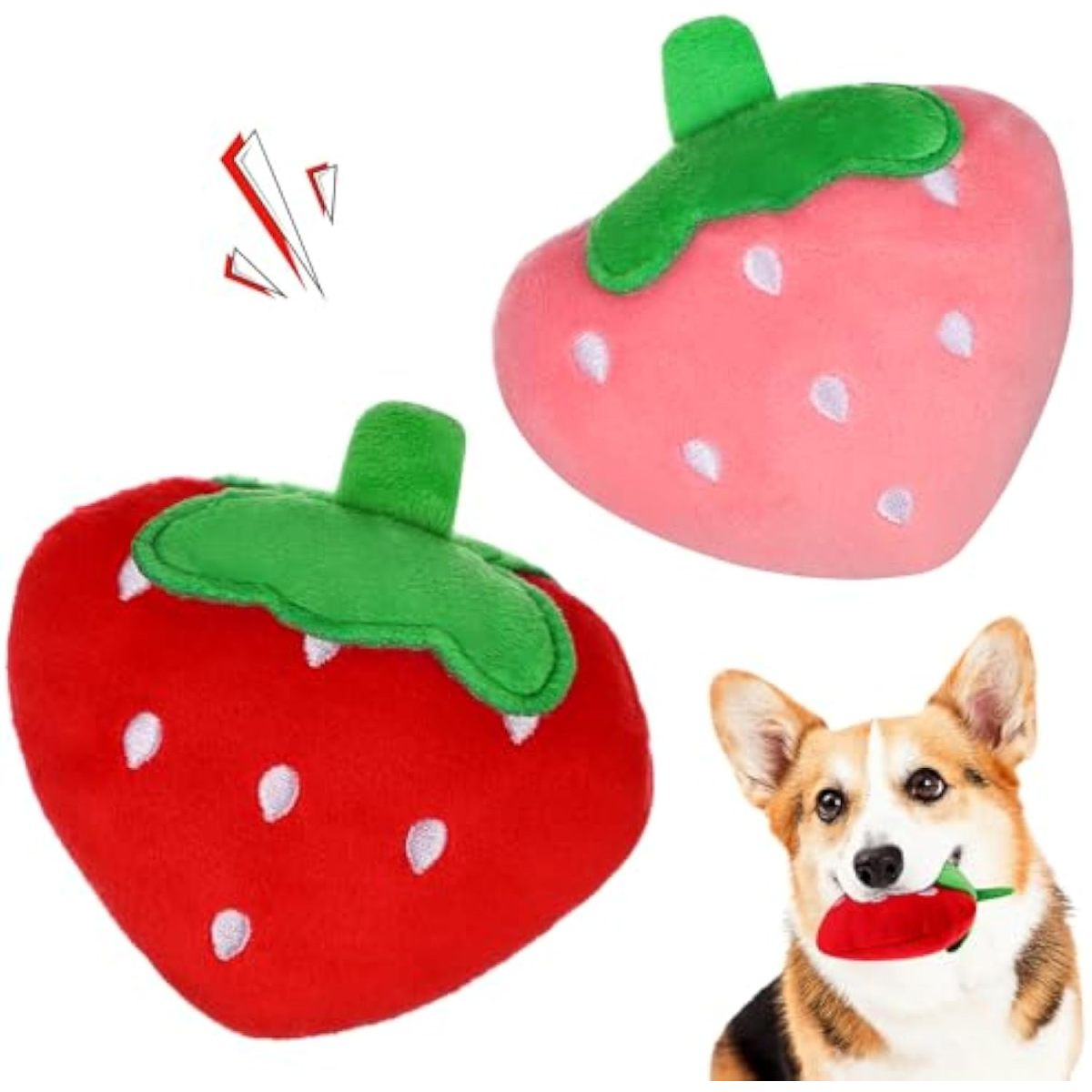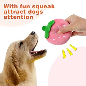 Unique Design: The plush toys in the shape of strawberries, with bright colors attract the dogs attention.