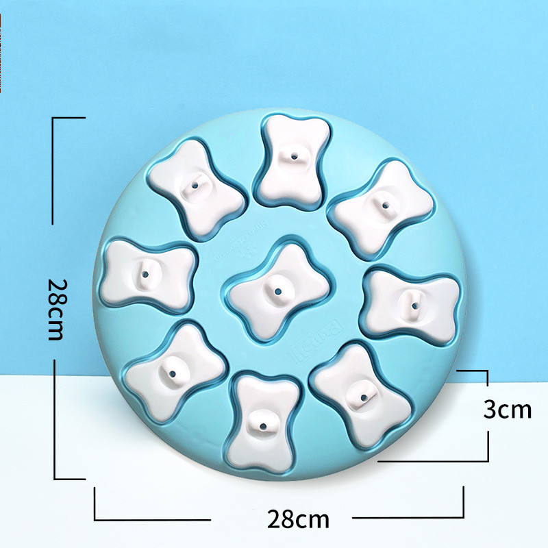 2. How to Play: This durable puppy toy is a dog brain game, which is very suitable for beginners. Put your puppy’s favorite snacks in 9 snack compartments and cover the bones. Tell your puppy where the snacks are and let the puppy game begin!