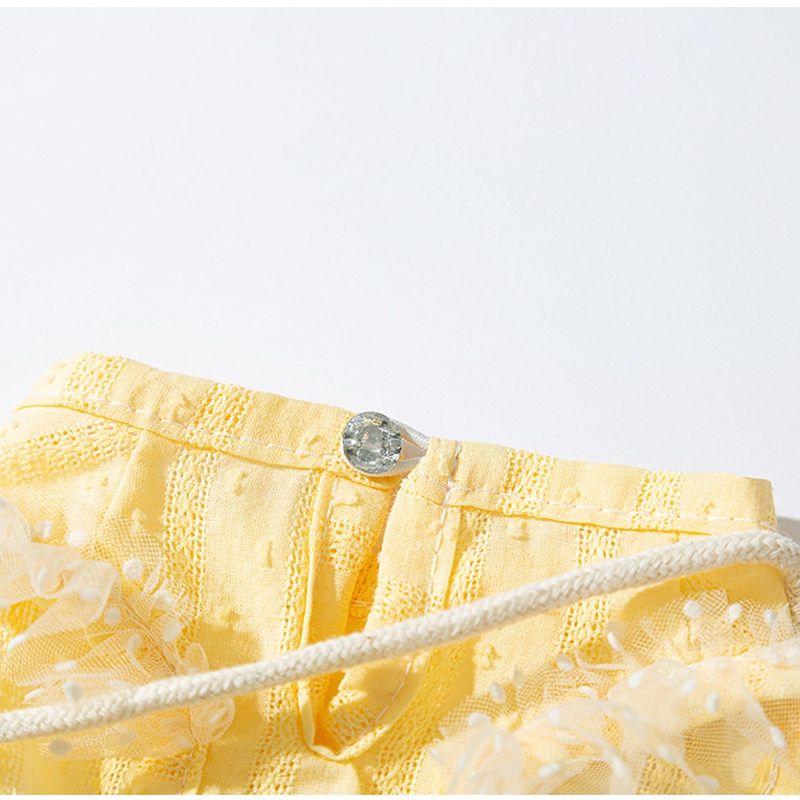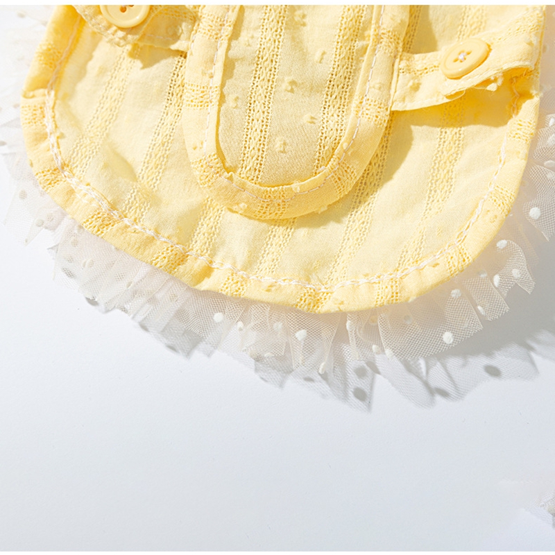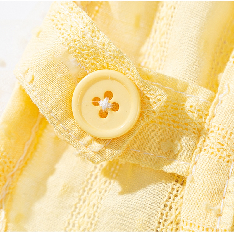 - Two-tone design: Available in soft yellow or light blue, it features textured fabrics with delicate ruffles, creating a comfortable and retro atmosphere.